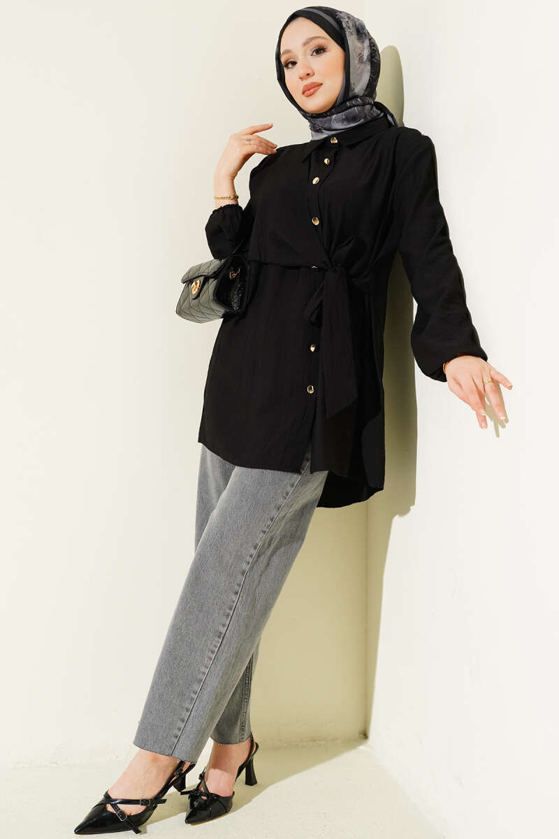 Fırfırlı Pelerin Detaylı Kısa Gömlek Siyah