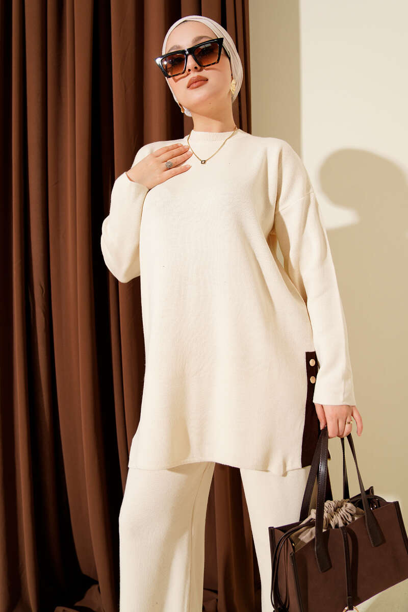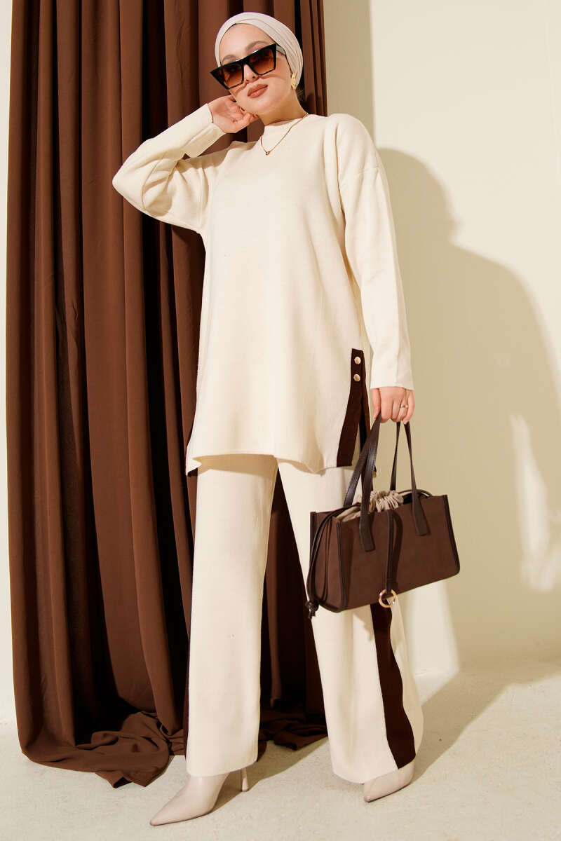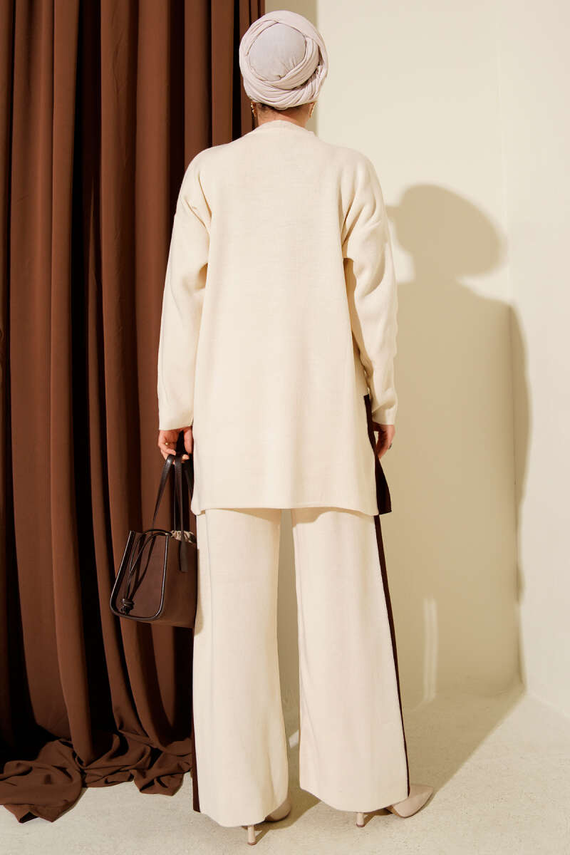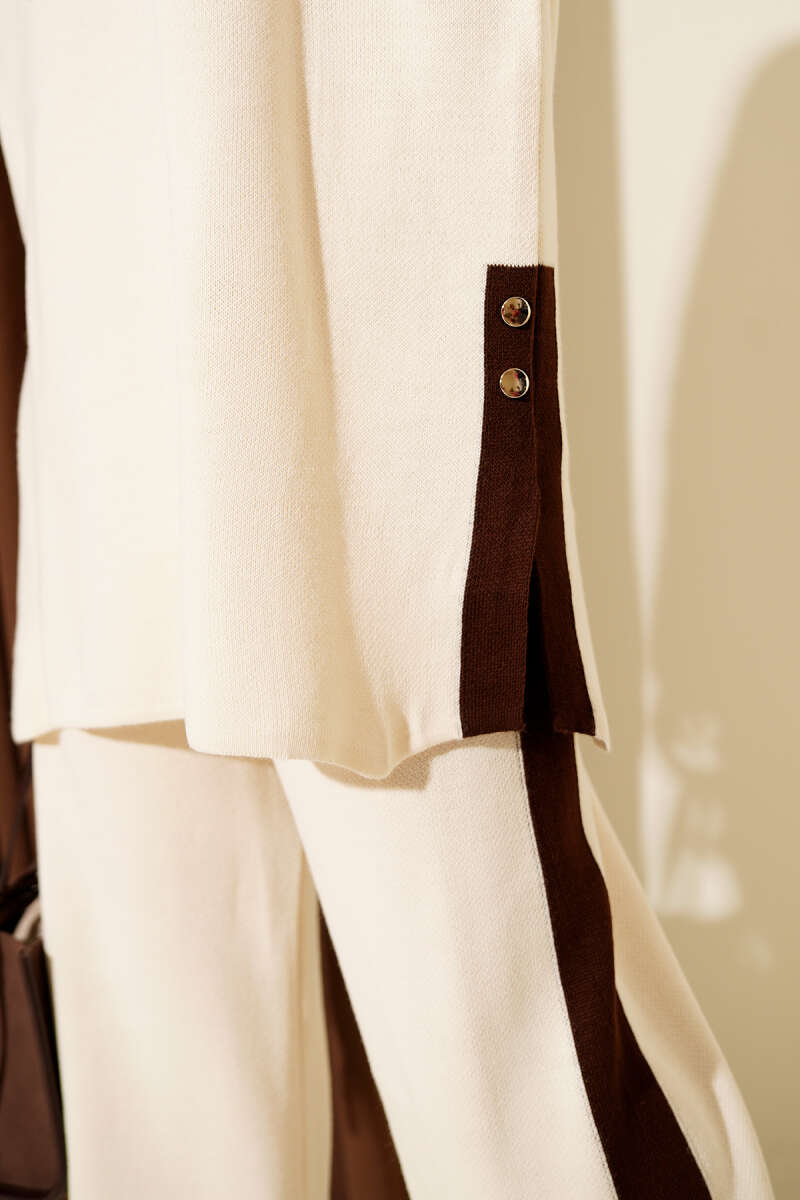 Yan Şerit Detaylı Triko İkili Takım Kahve