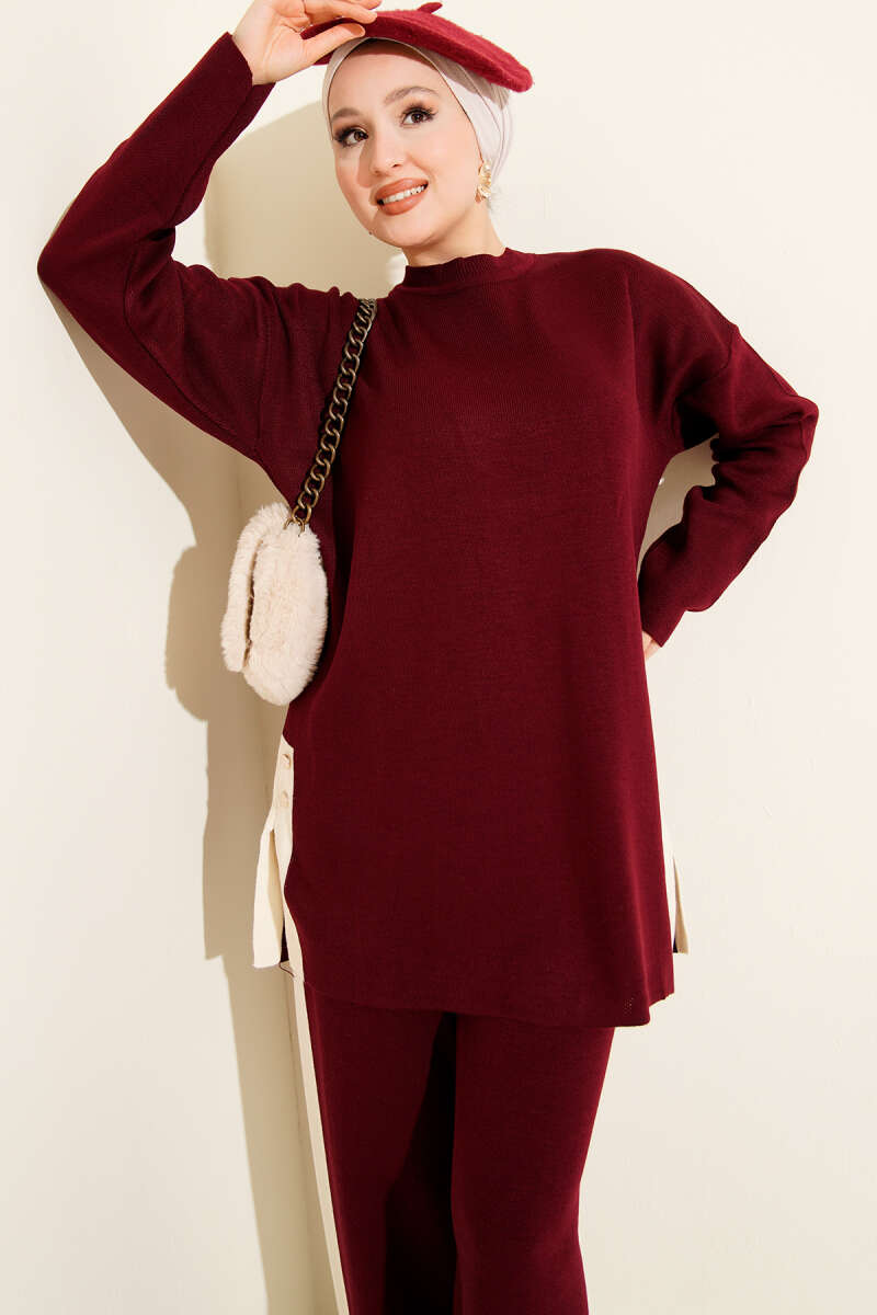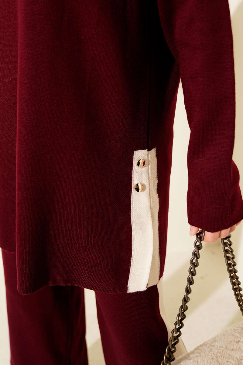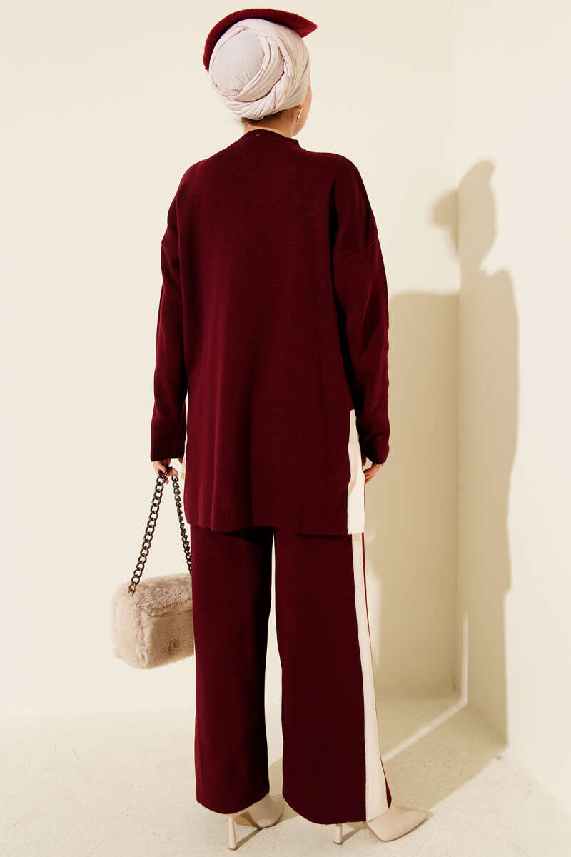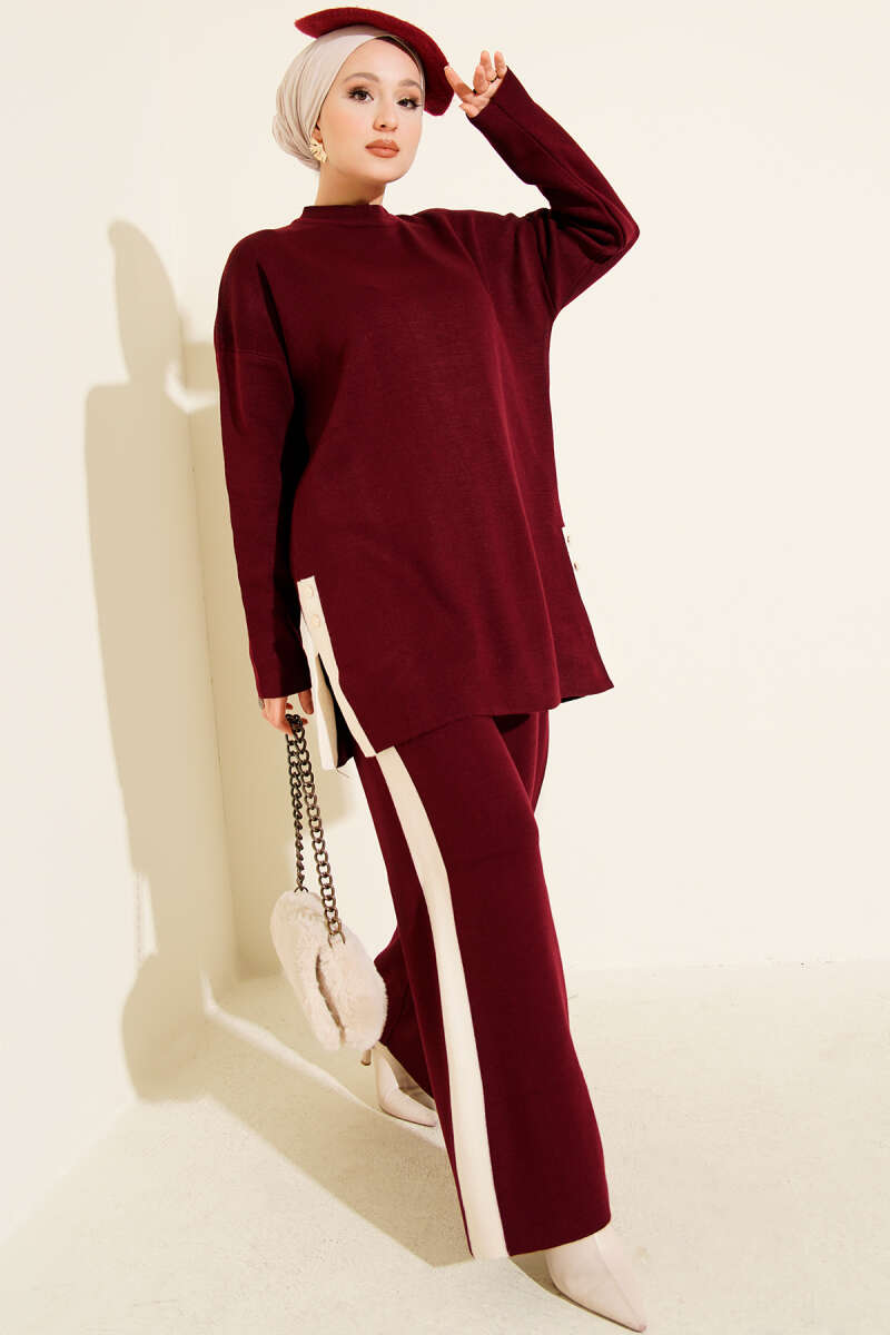 Yan Şerit Detaylı Triko İkili Takım Kahve