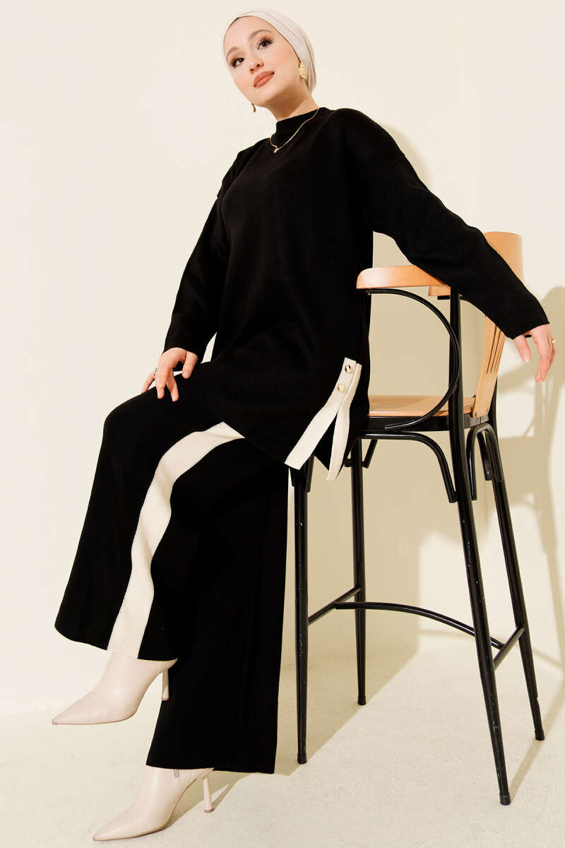 Yan Şerit Detaylı Triko İkili Takım Bej