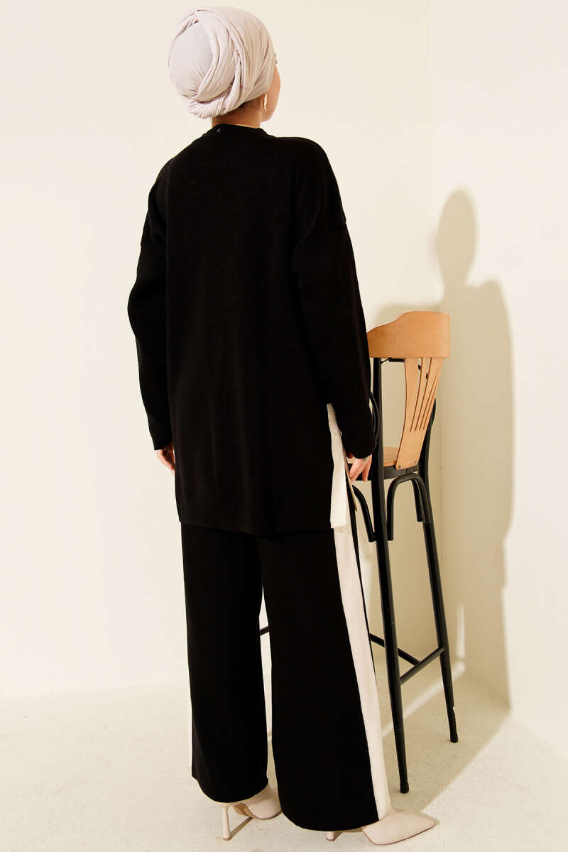 Yan Şerit Detaylı Triko İkili Takım Kahve