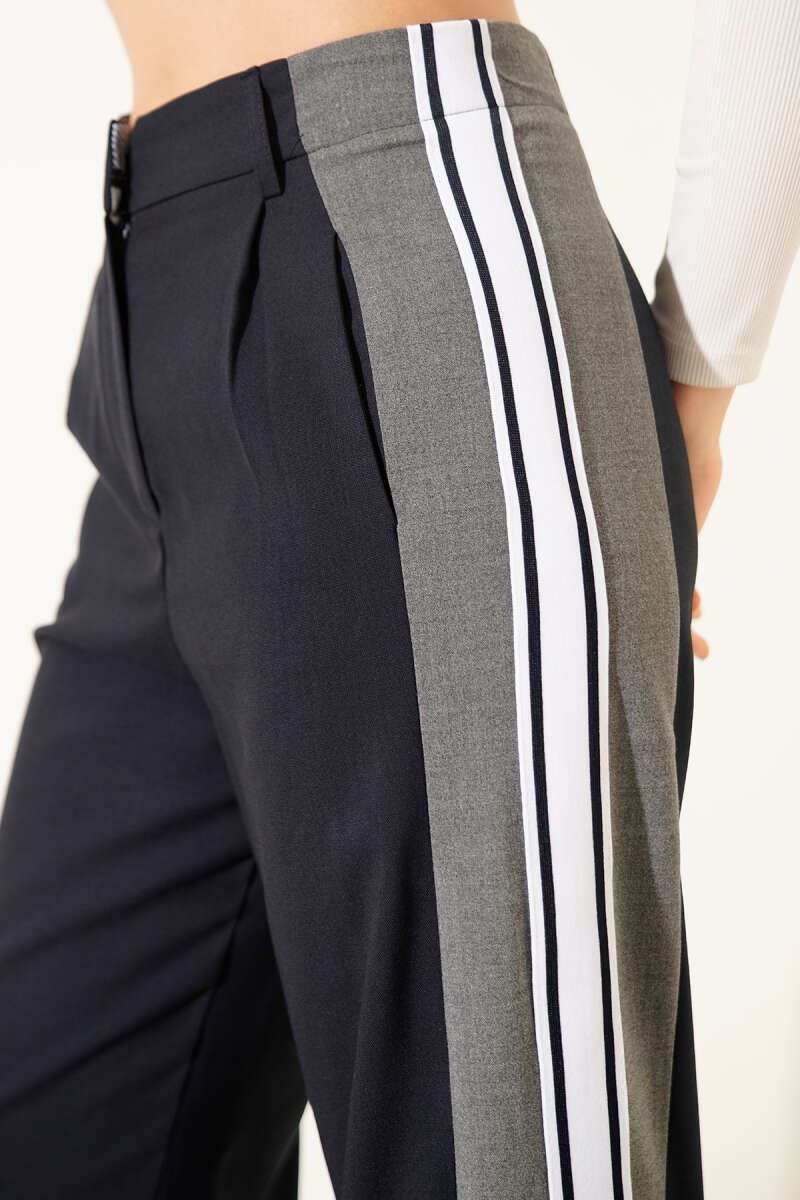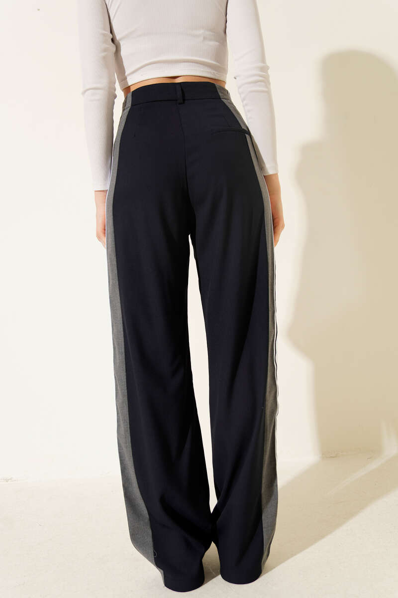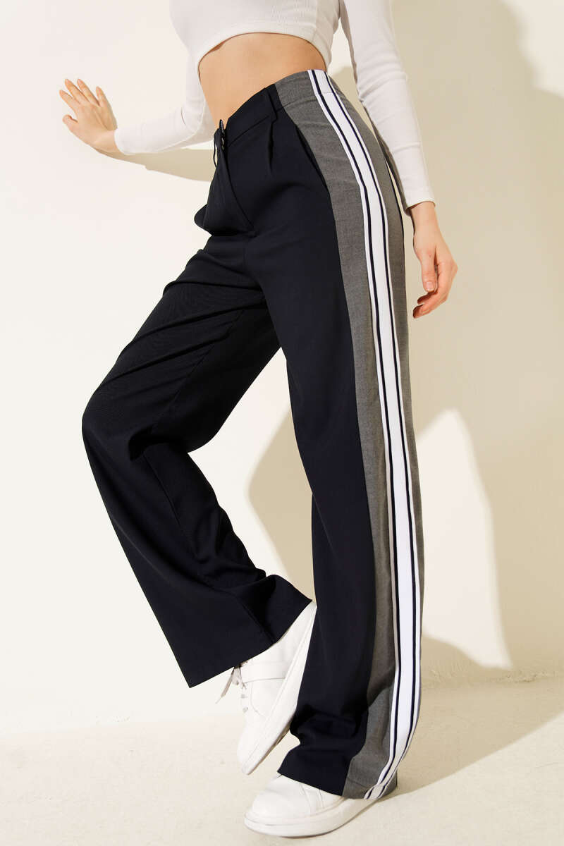 Yan Şerit Garnili Palazzo Pantolon Lacivert