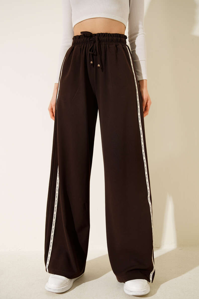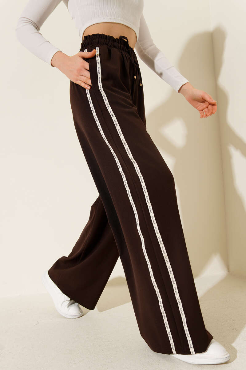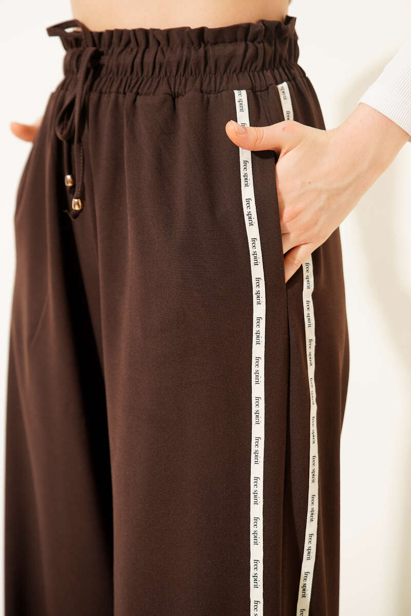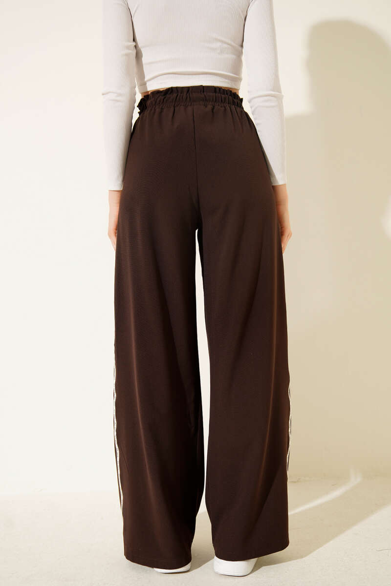 Yan Şeritli Bel Lastikli Palazzo Pantolon Kahve