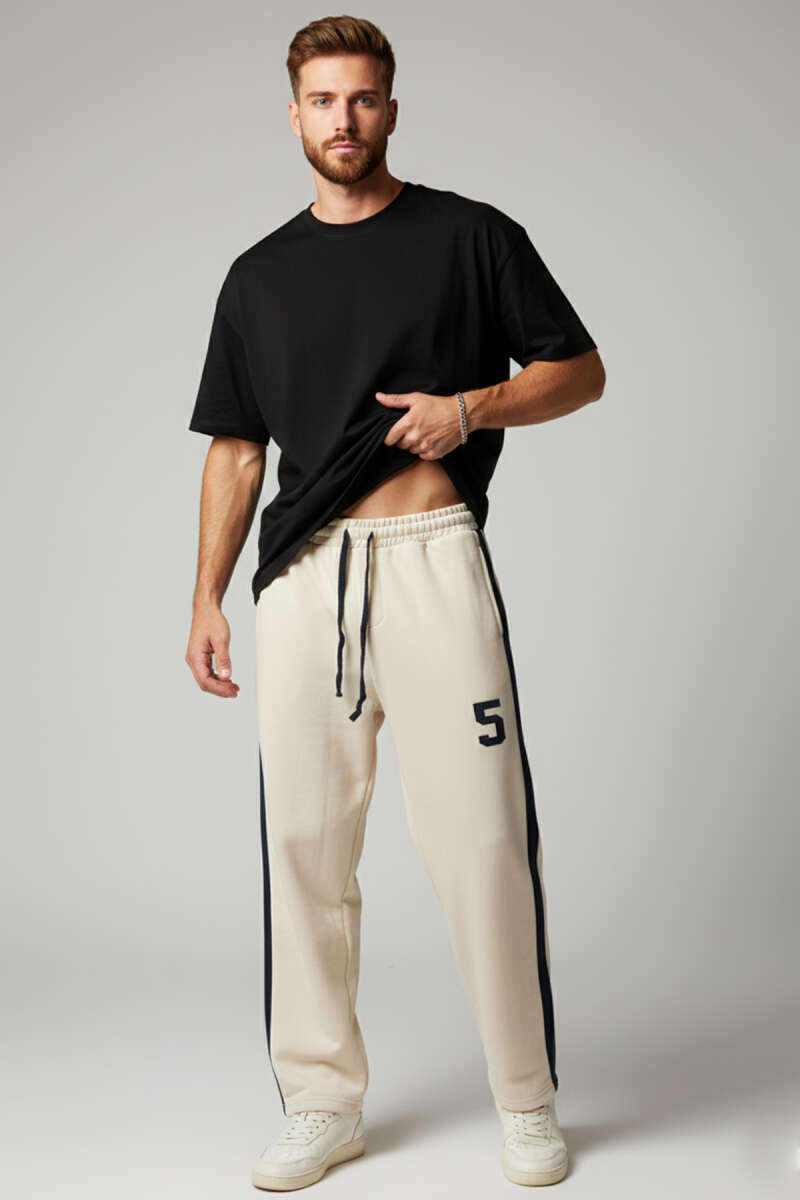 Önü Dikişli Bel Lastikli Erkek Eşofman Altı Bej