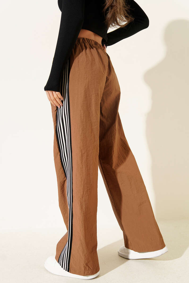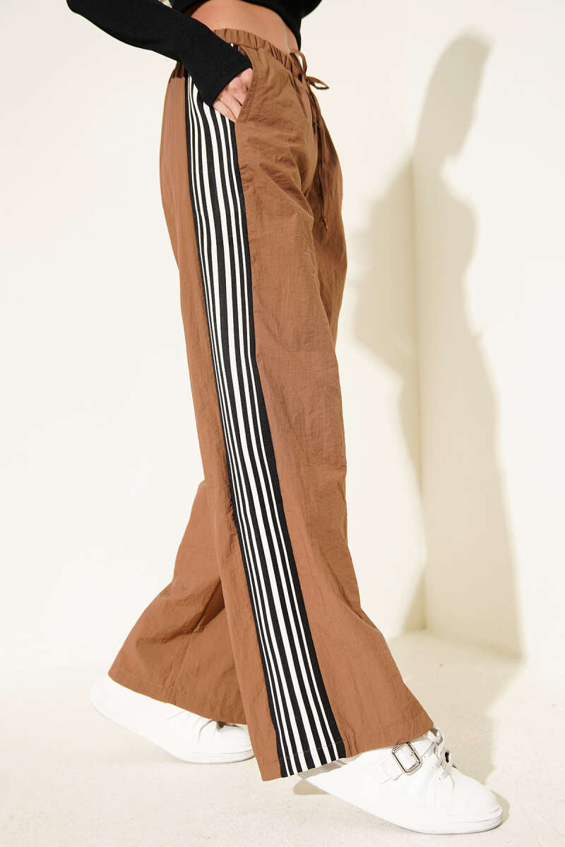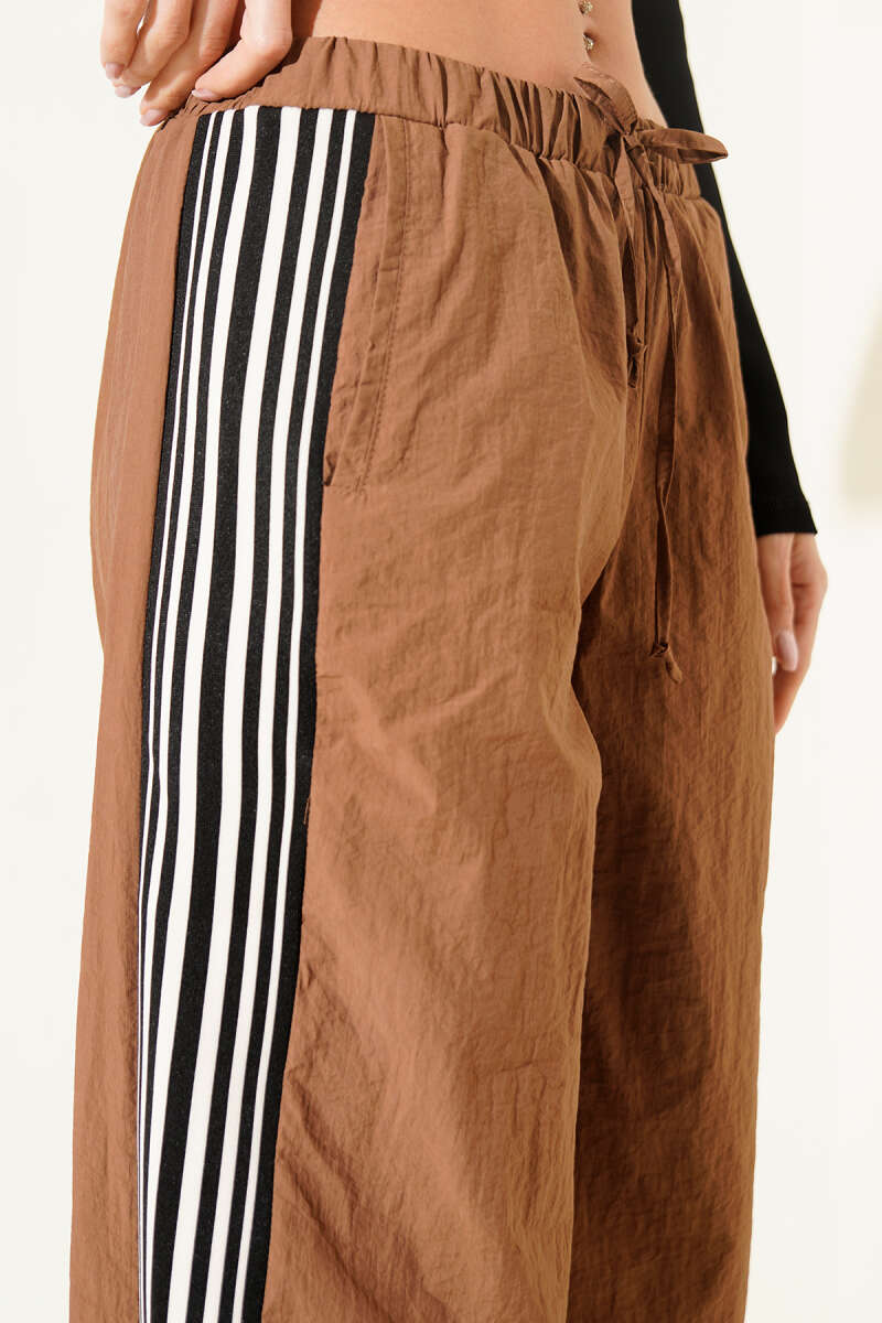 Yan Şeritli Paraşüt Pantolon Kahve