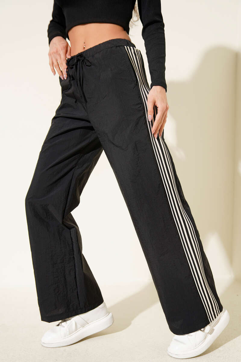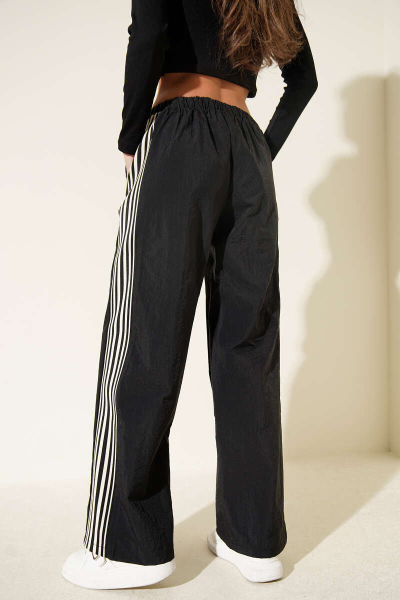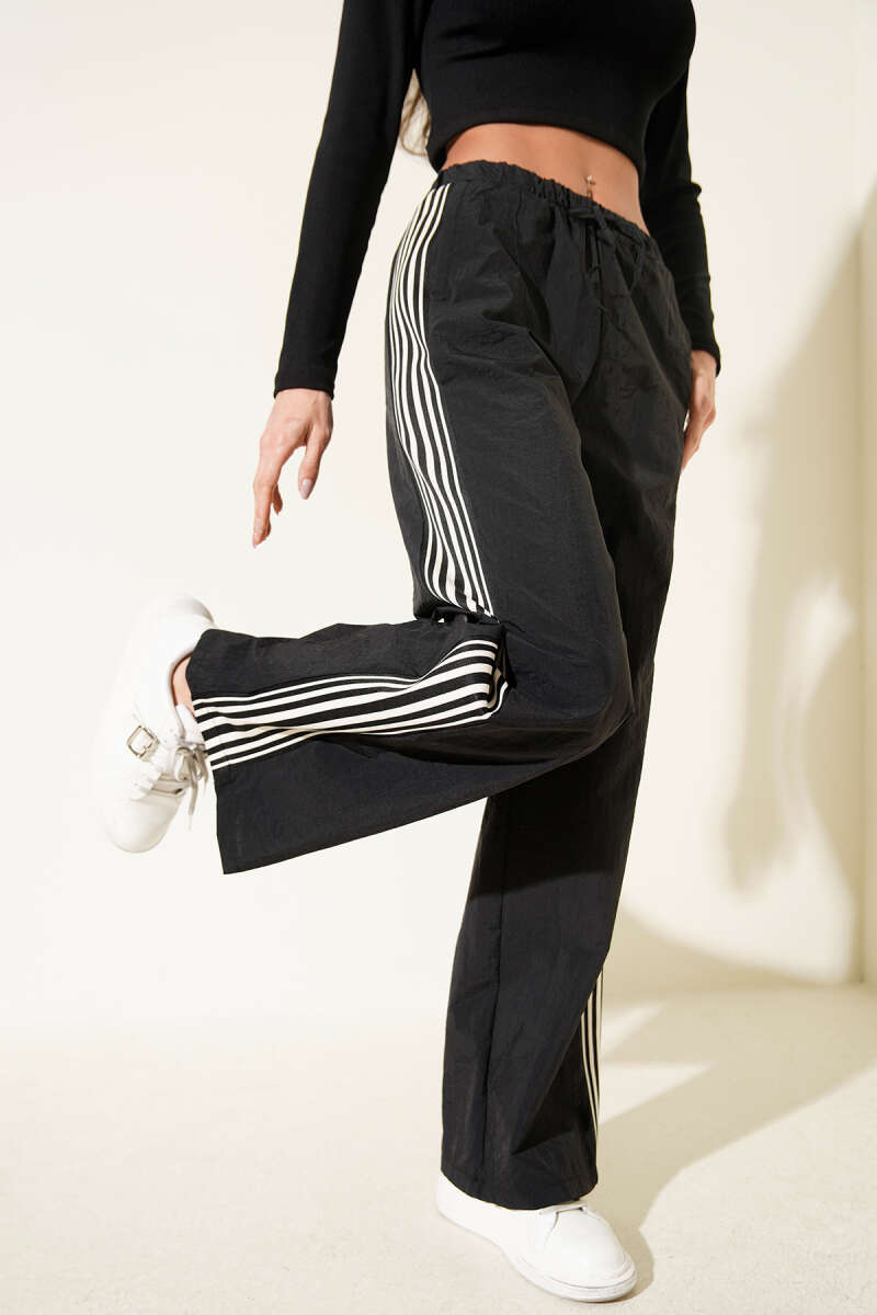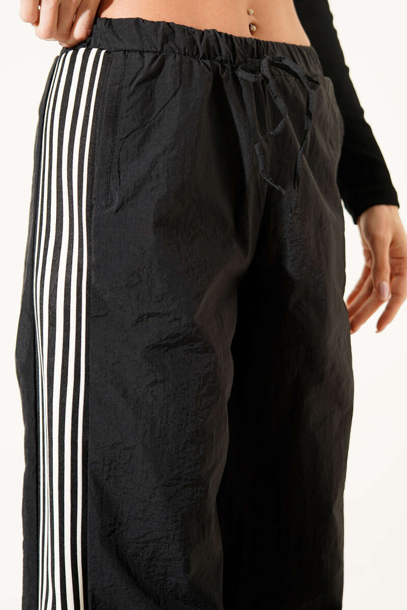 Yan Şeritli Paraşüt Pantolon Siyah