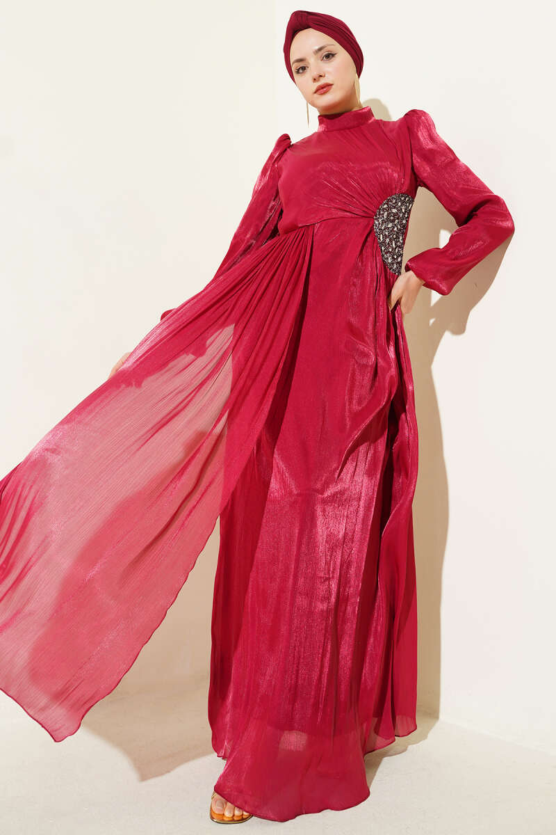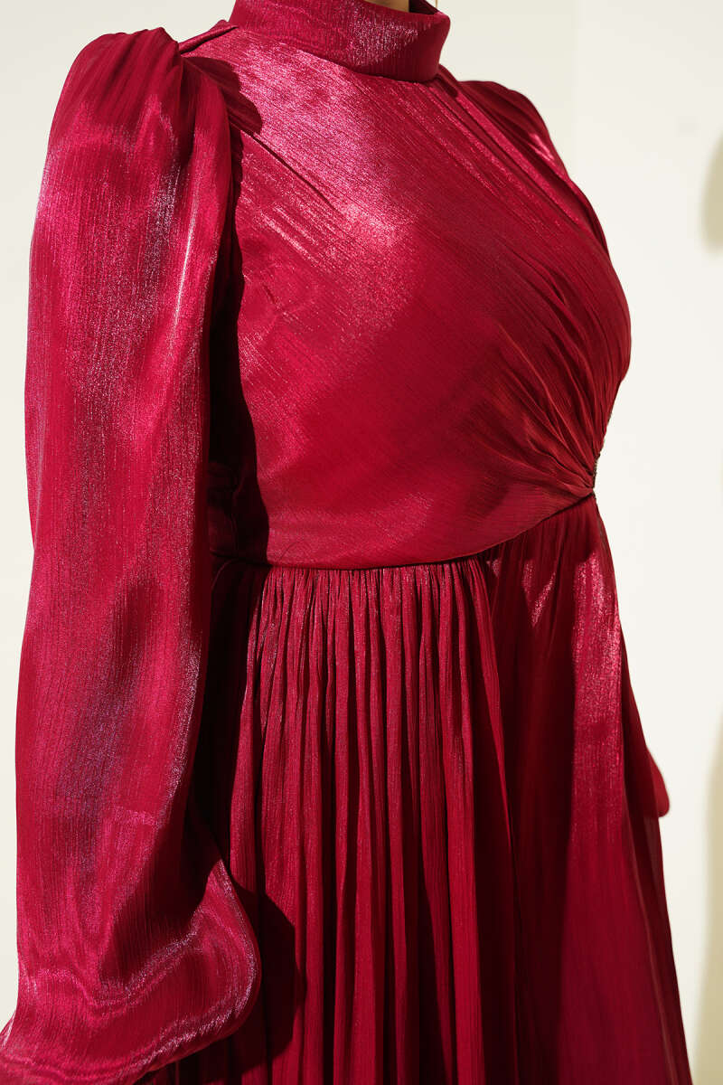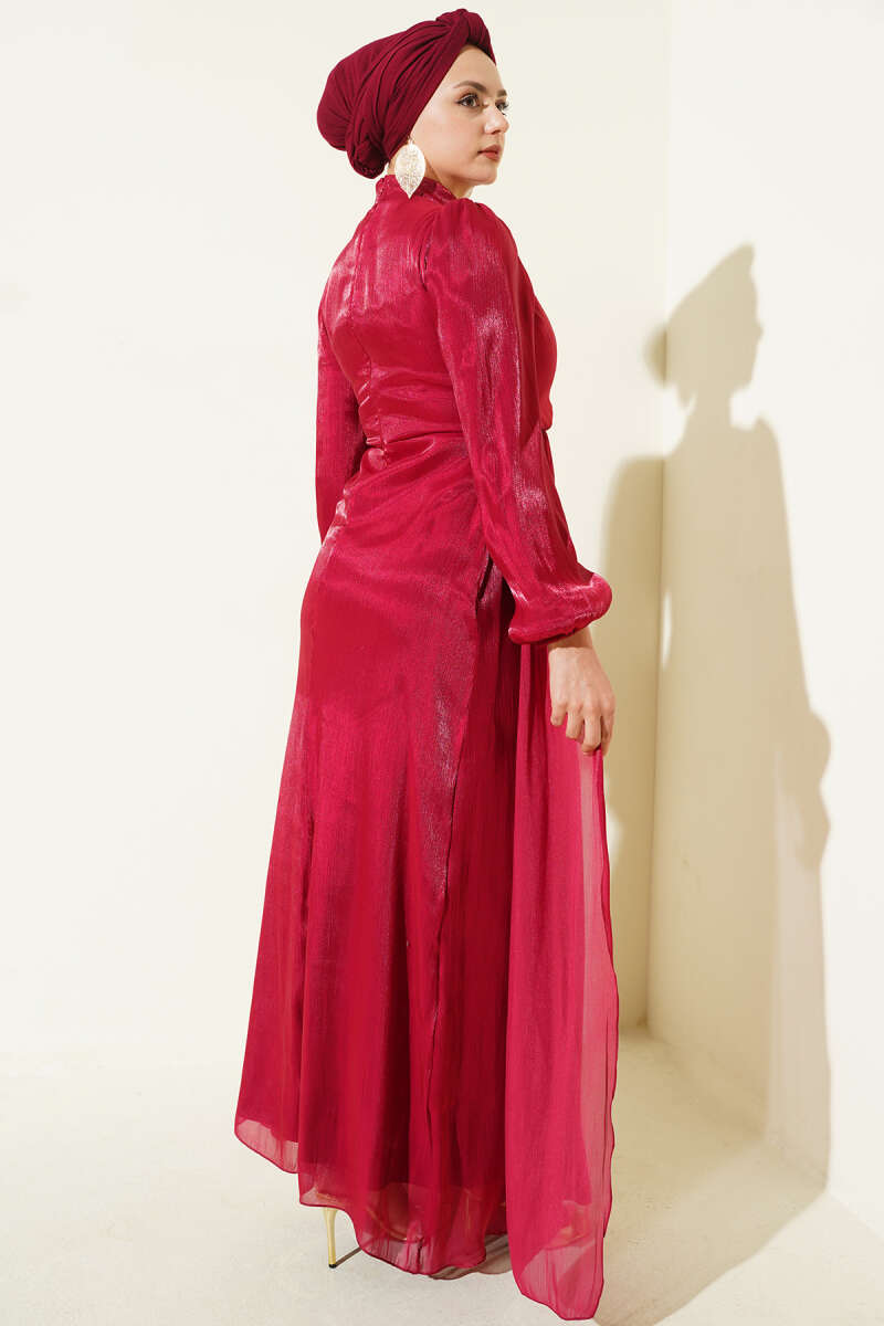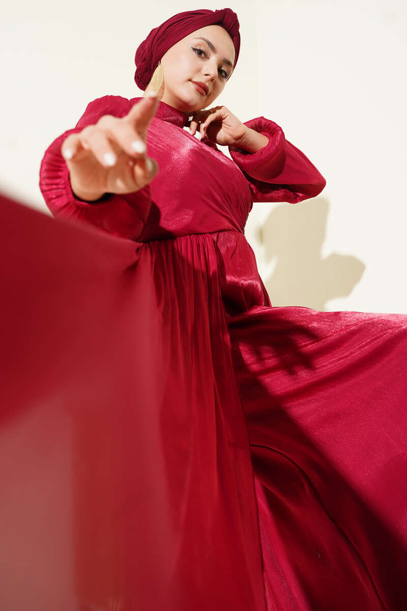Bilek Bağlamalı Kuşaklı Abiye Elbise Bordo