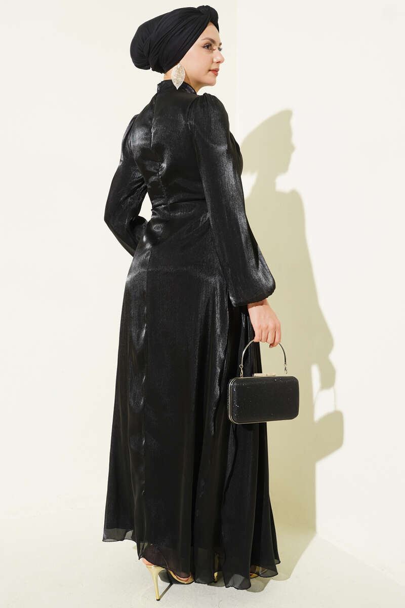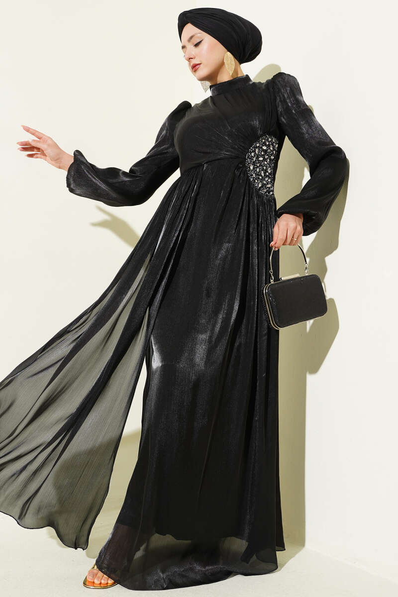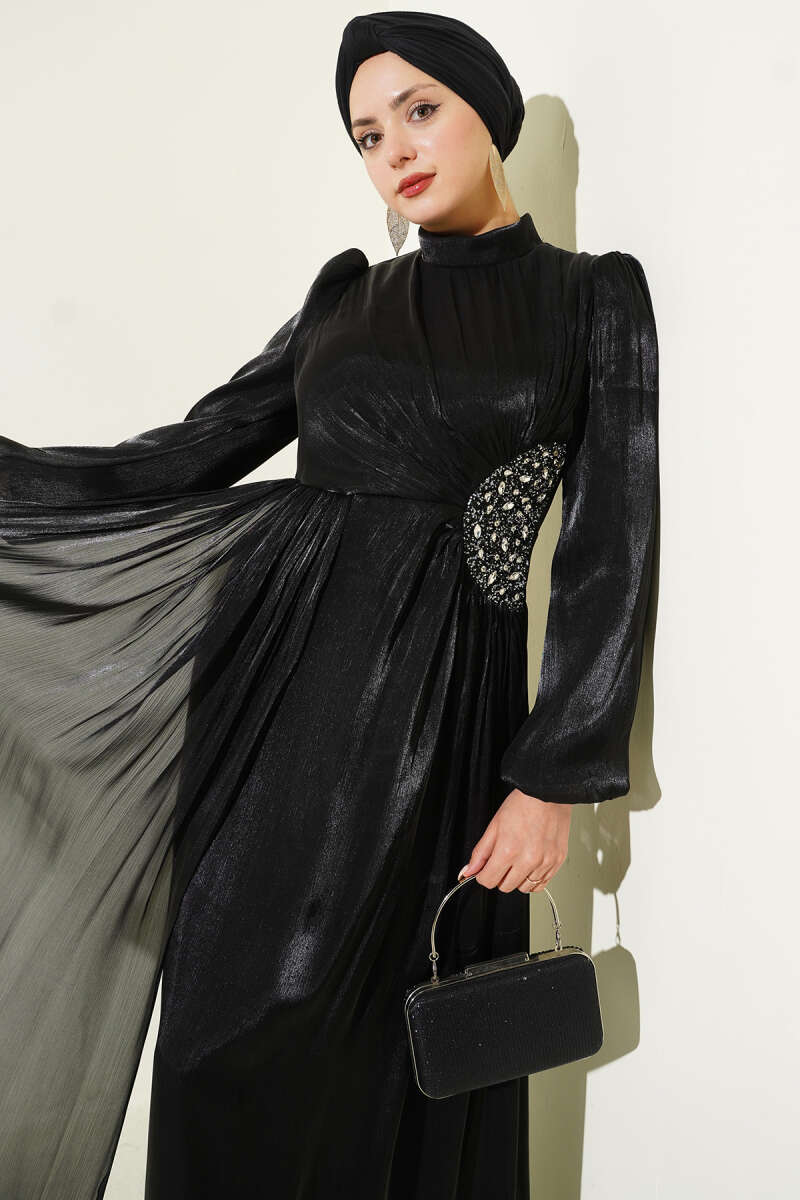 Bilek Bağlamalı Kuşaklı Abiye Elbise Siyah