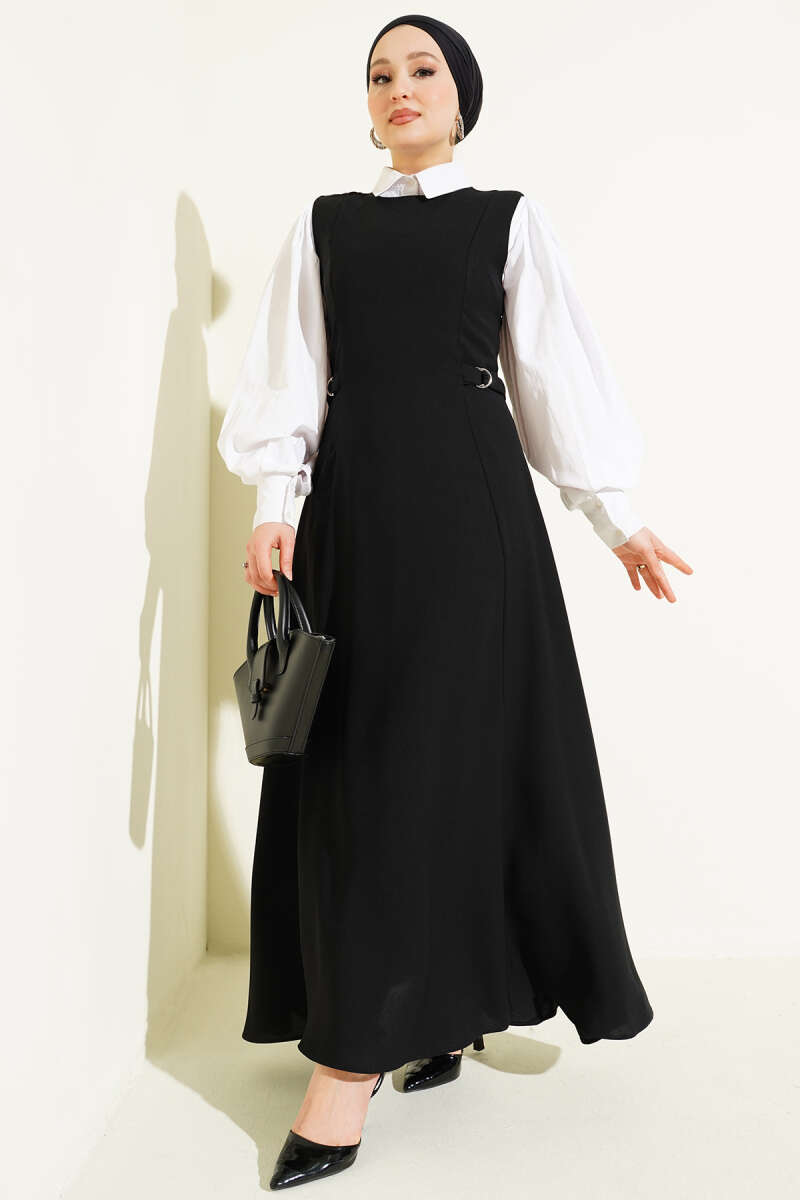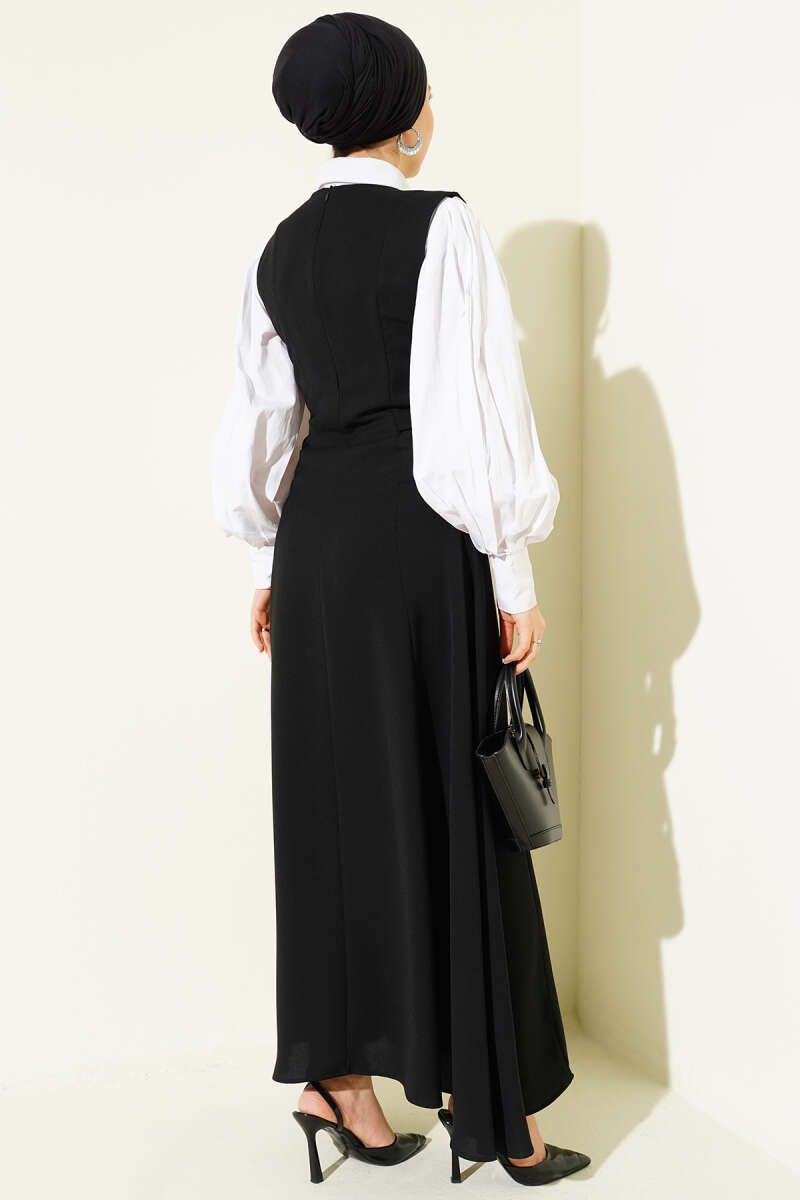 Tek Omuz Pelerinli Saten Abiye Siyah