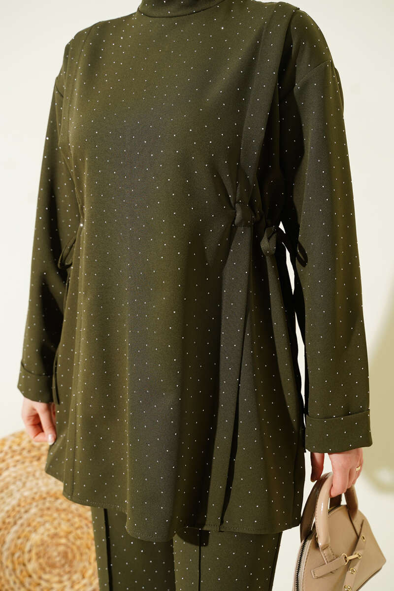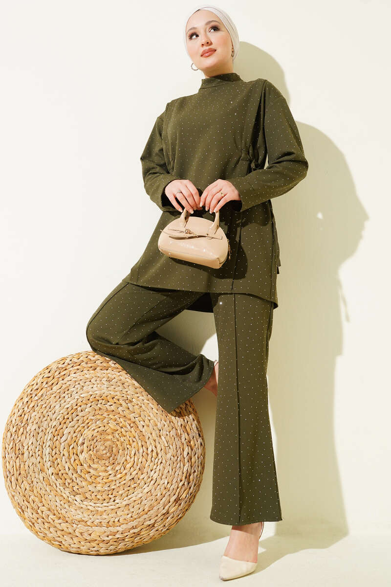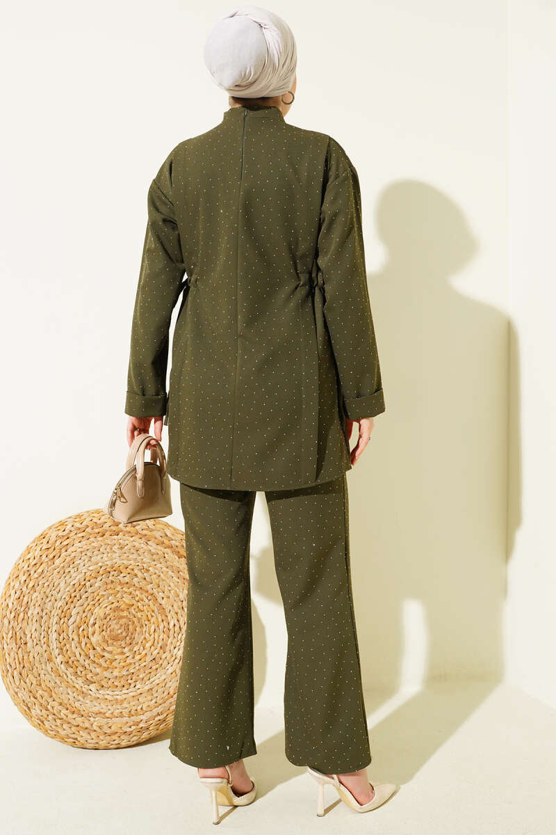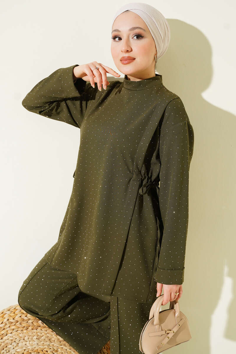 Yan Tünelli Taş Süslemeli İkili Takım Haki