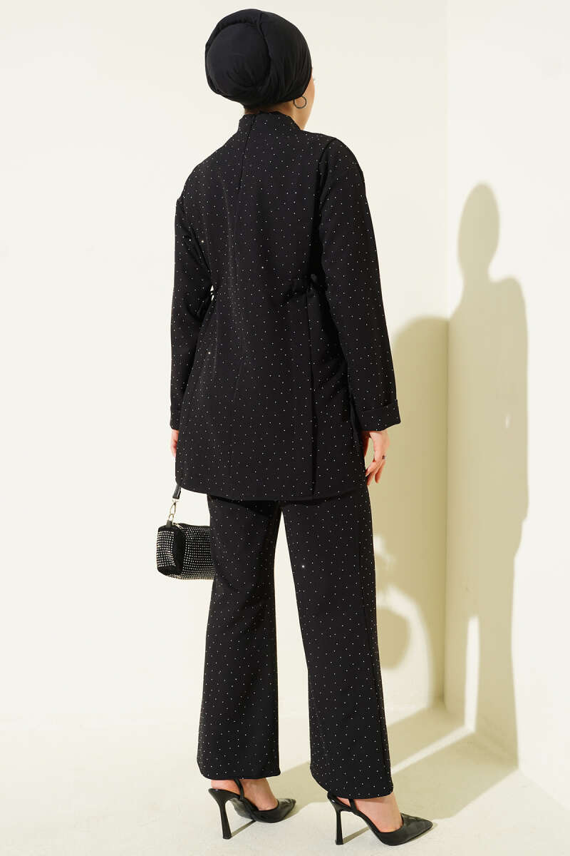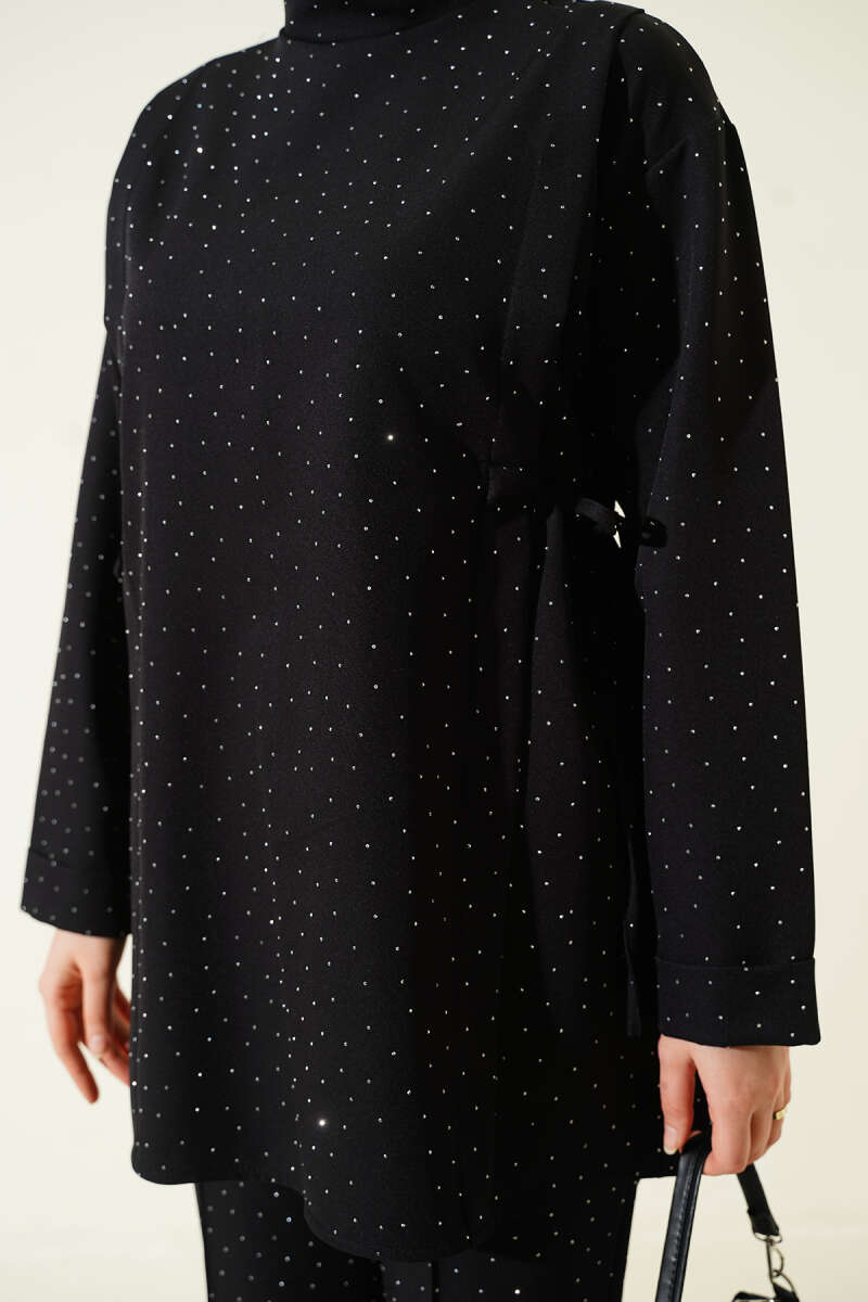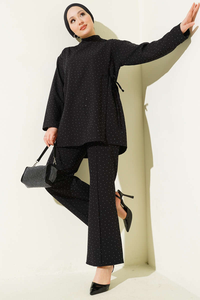 Yan Tünelli Taş Süslemeli İkili Takım Siyah