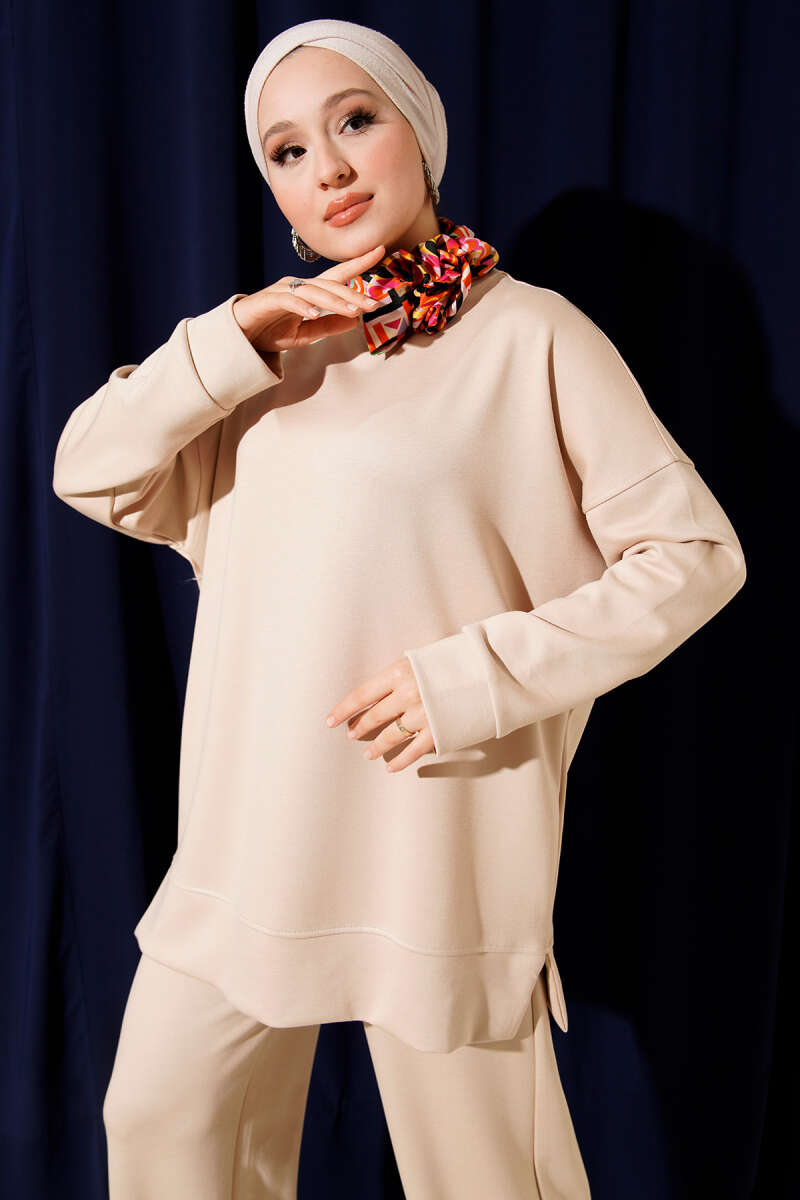 Boncuk Detaylı Scuba İkili Takım Vizon
