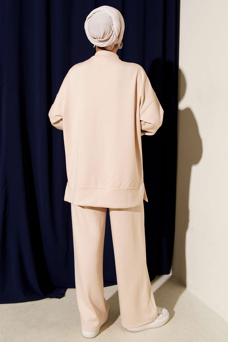 Loyşa Fermuarlı Cepli Kapüşonlu İkili Takım Vizon