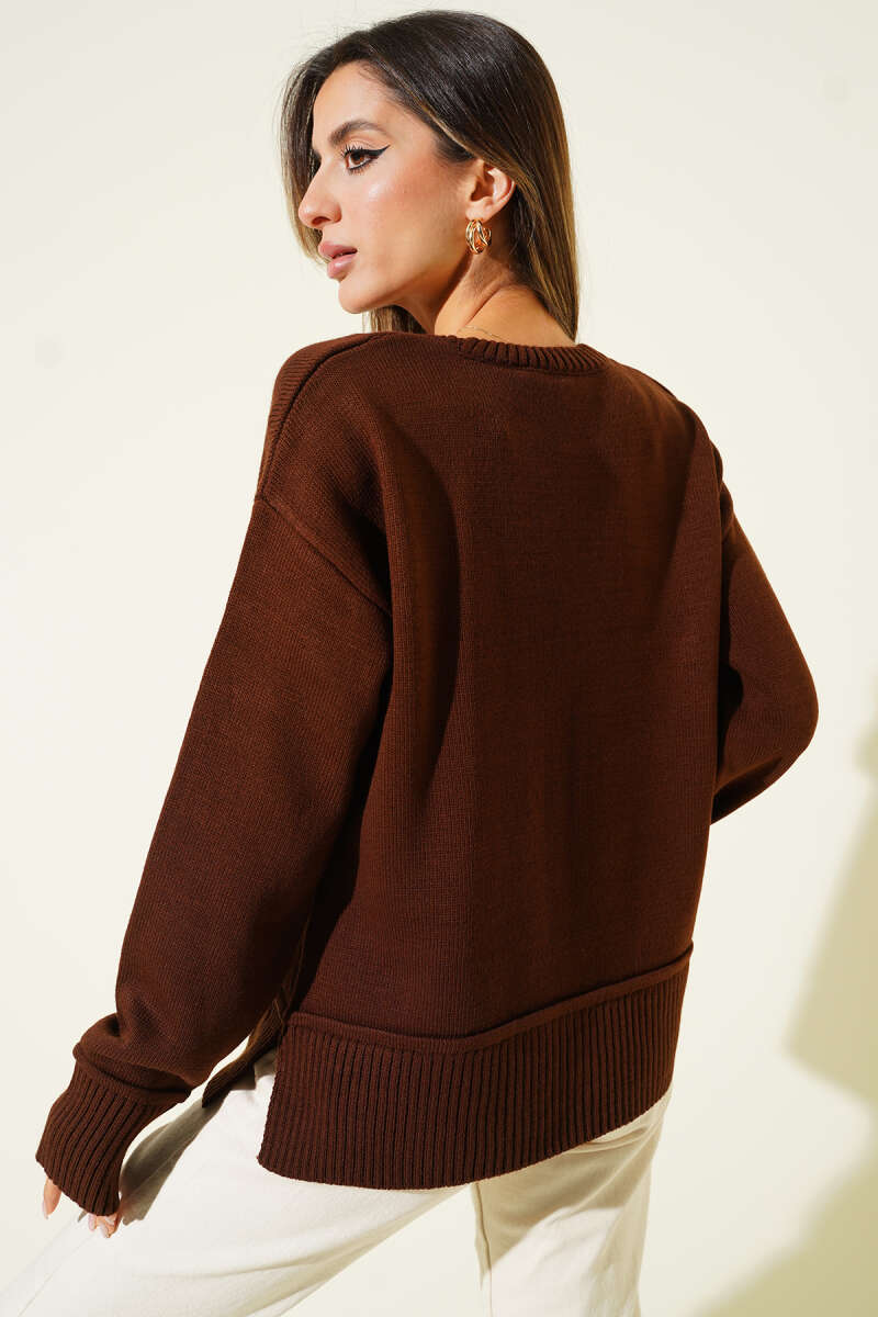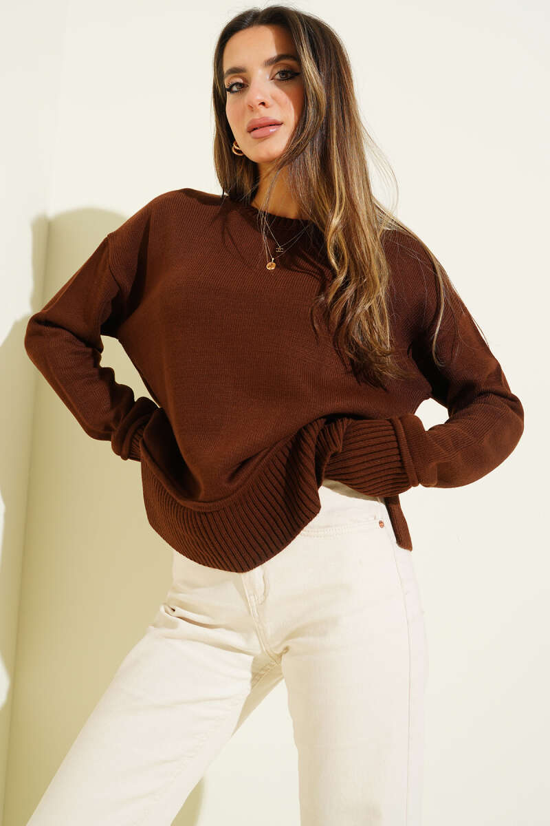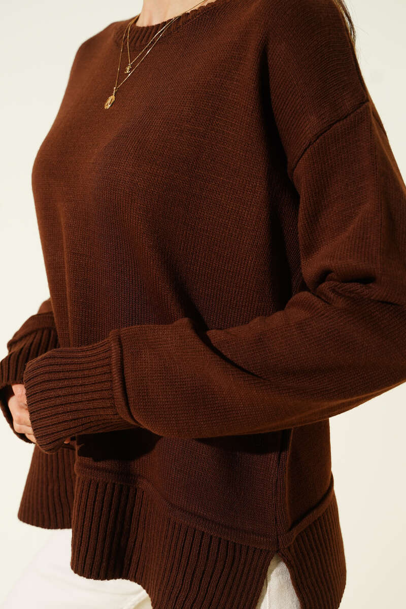 Yan Yırtmaç Detaylı Triko Kazak Füme