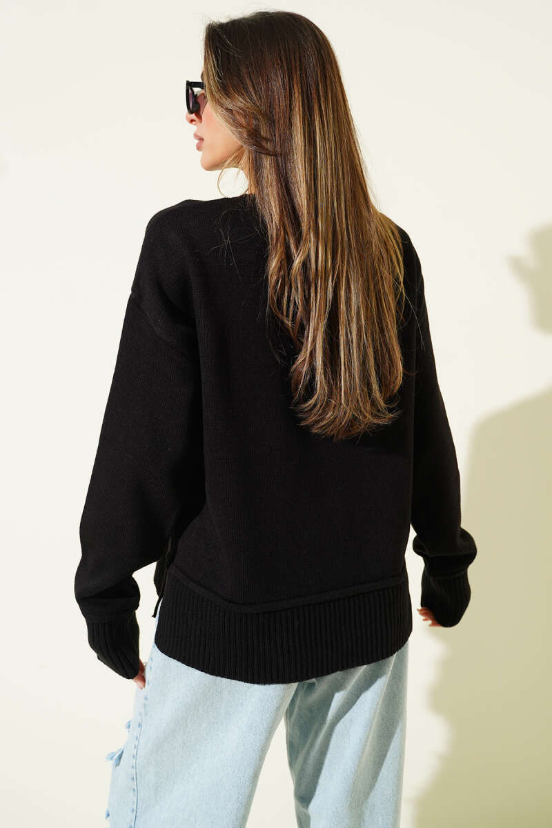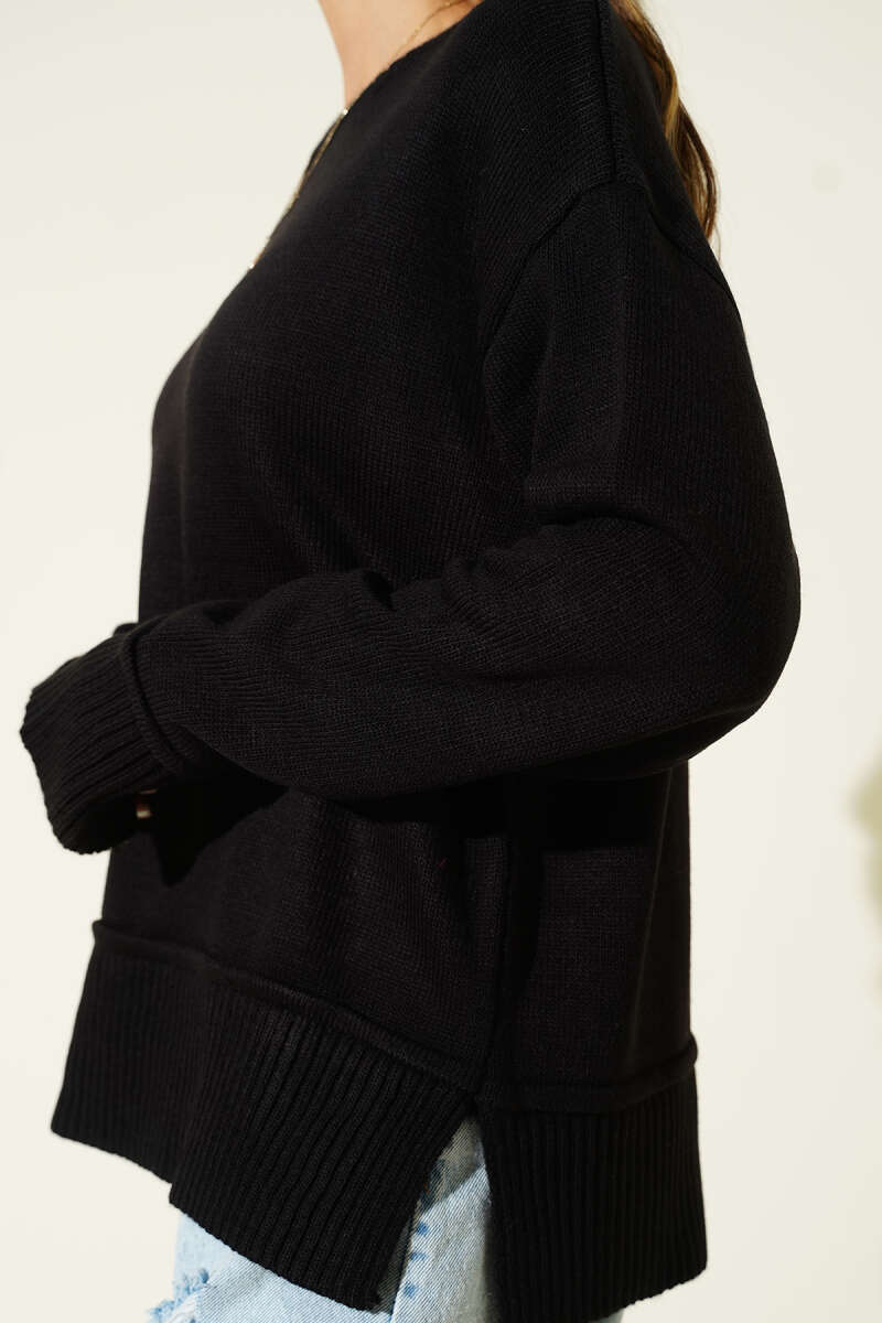 Yan Yırtmaç Detaylı Triko Kazak Taş