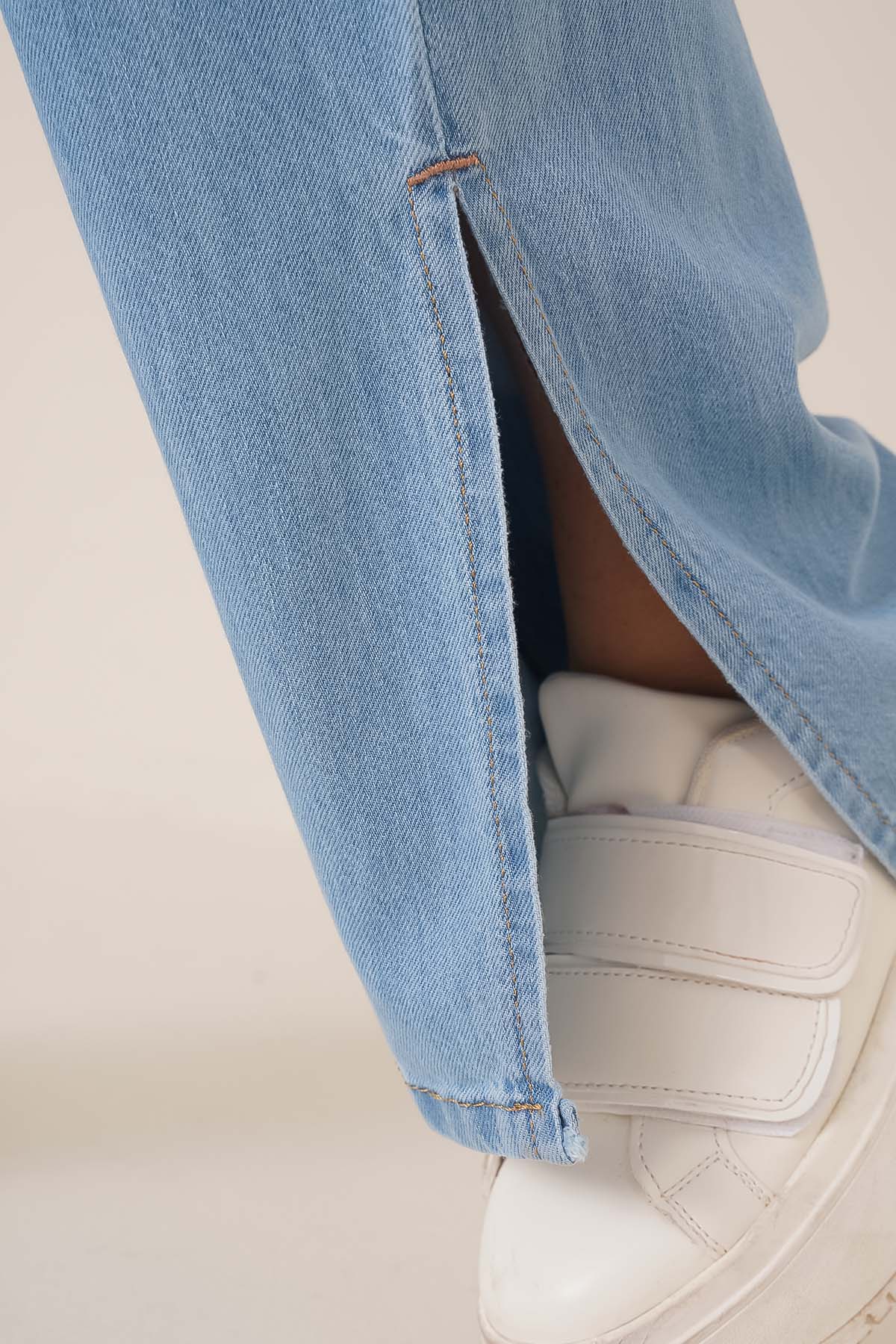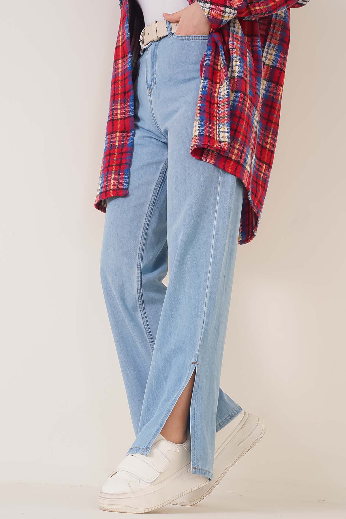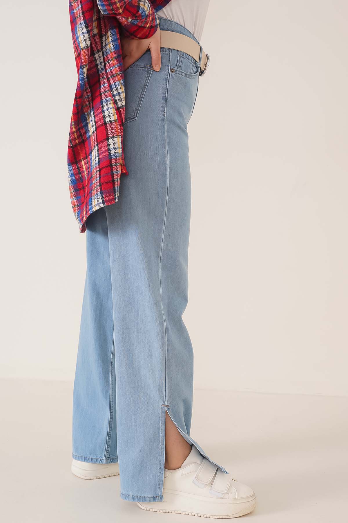 Yeni sezon model pantolonumuz şık tasarıma sahiptir. Tek düğmeli fermuarlıdır. Paçasının ön kısmında yırtmaç detayı bulunmaktadır ve paçası boldur. İki arkada iki önde cebi vardır. Ekstra olarak sağ cebinde küçük bir cep daha bulunmaktadır.