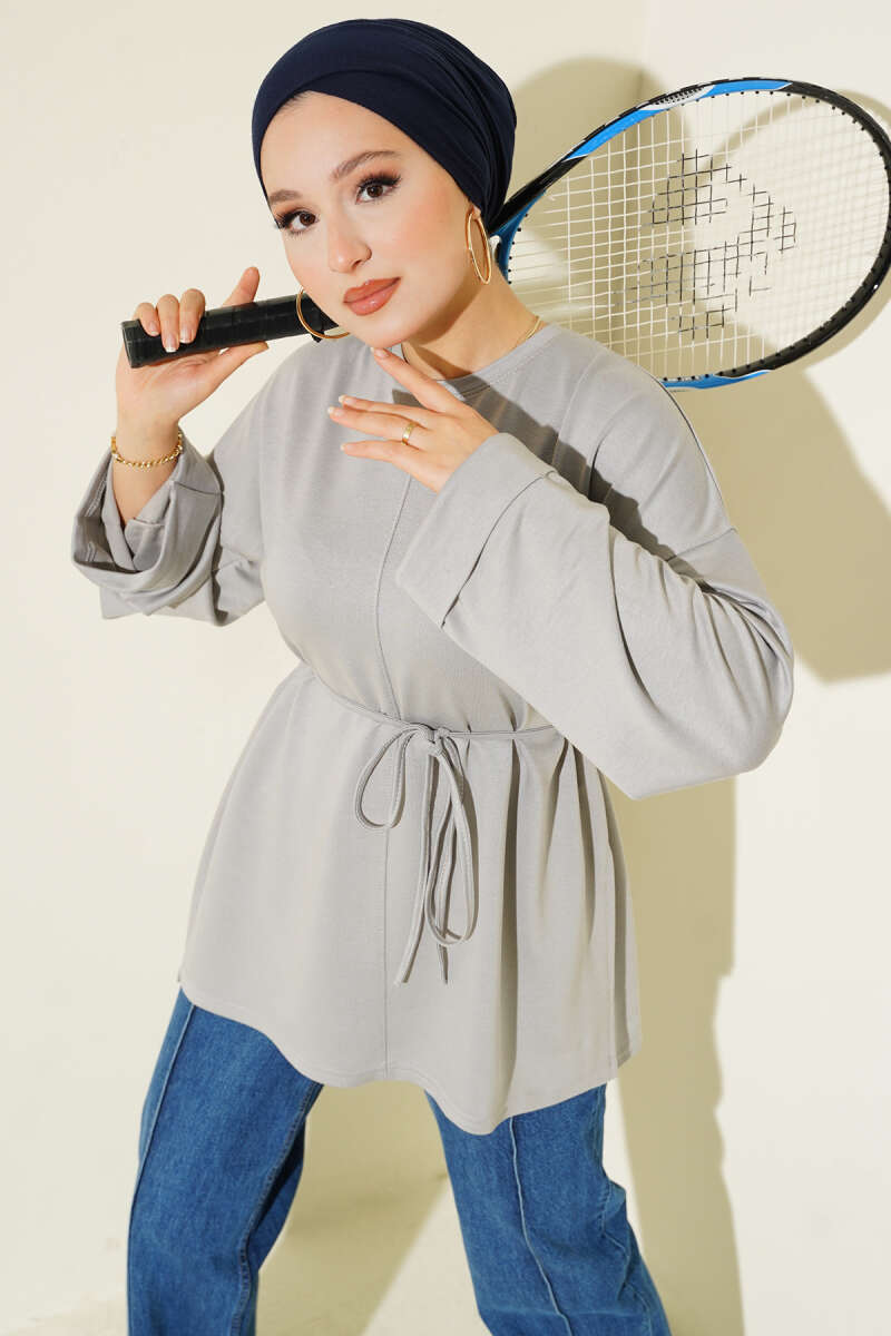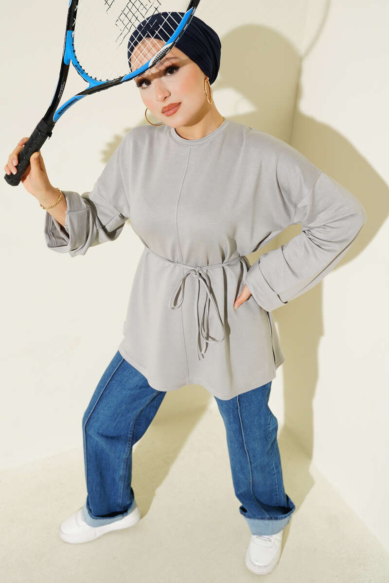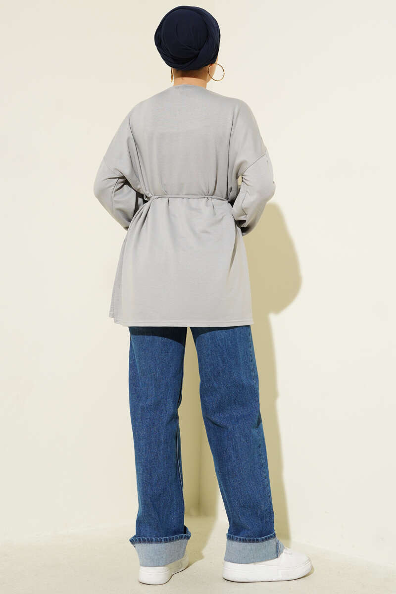Önü Kurdeleli Buklet Ceket Mint Antrasit