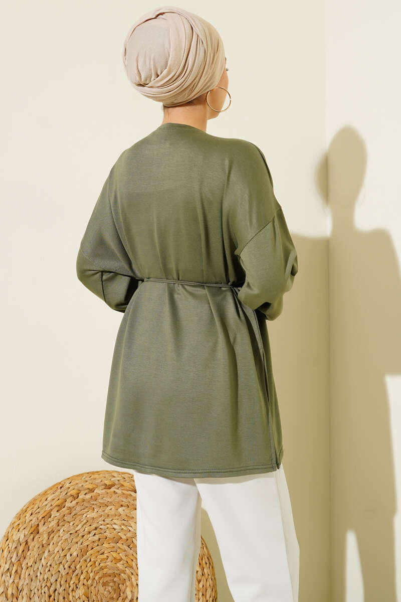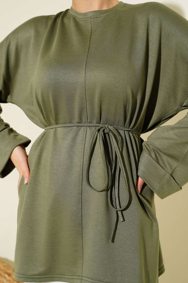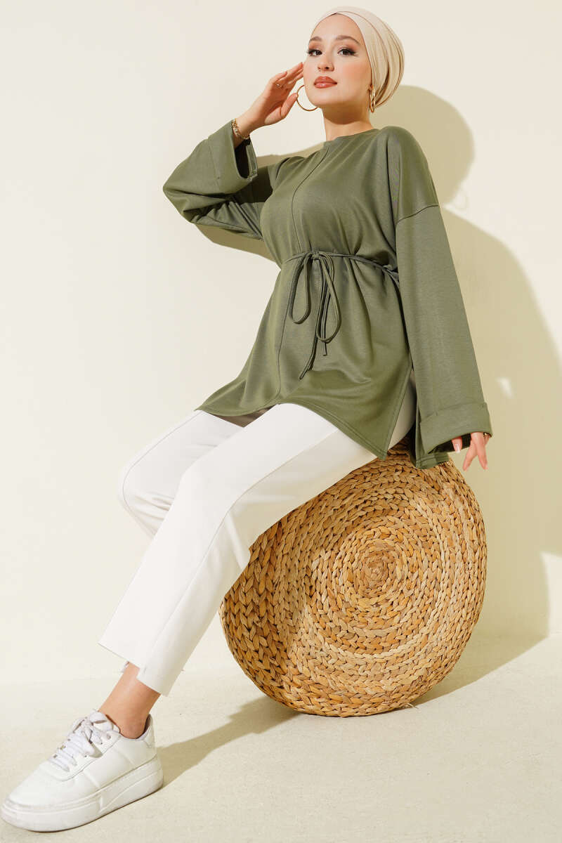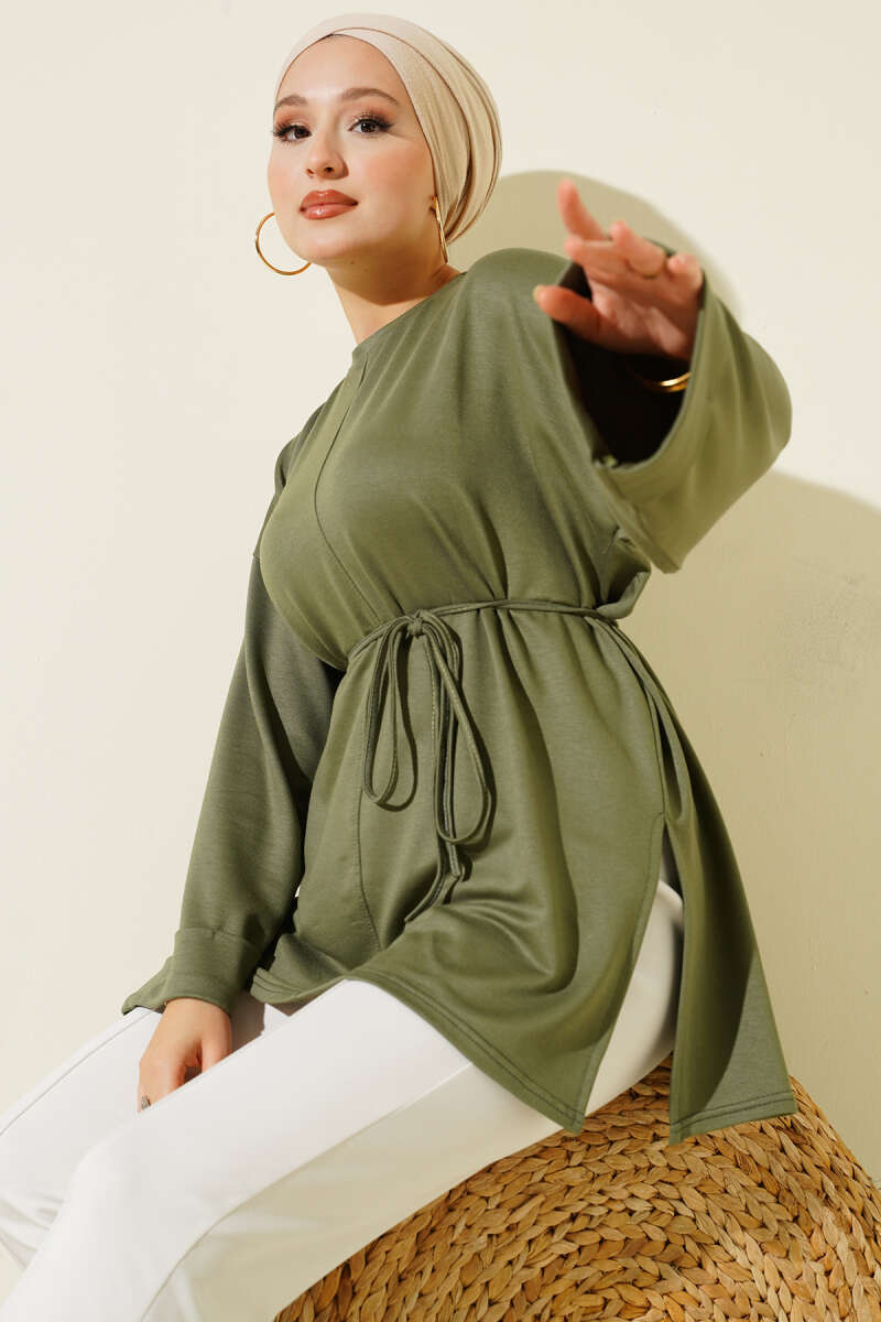 Yan Yırtmaçlı Duble Kol Tunik Haki
