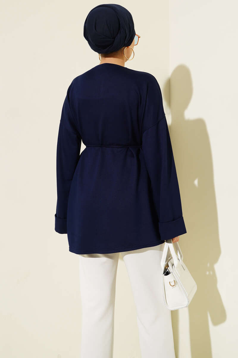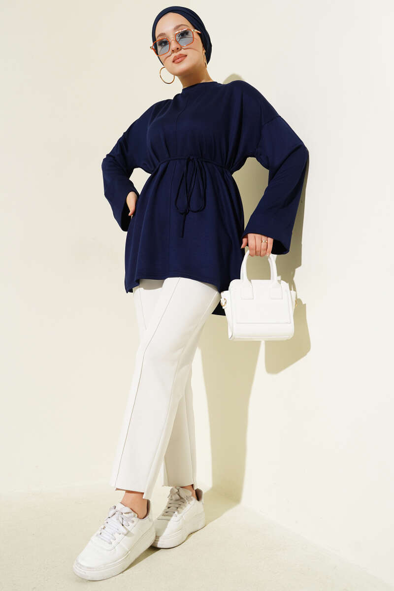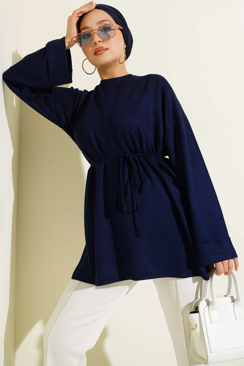 Yan Yırtmaçlı Duble Kol Tunik Lacivert