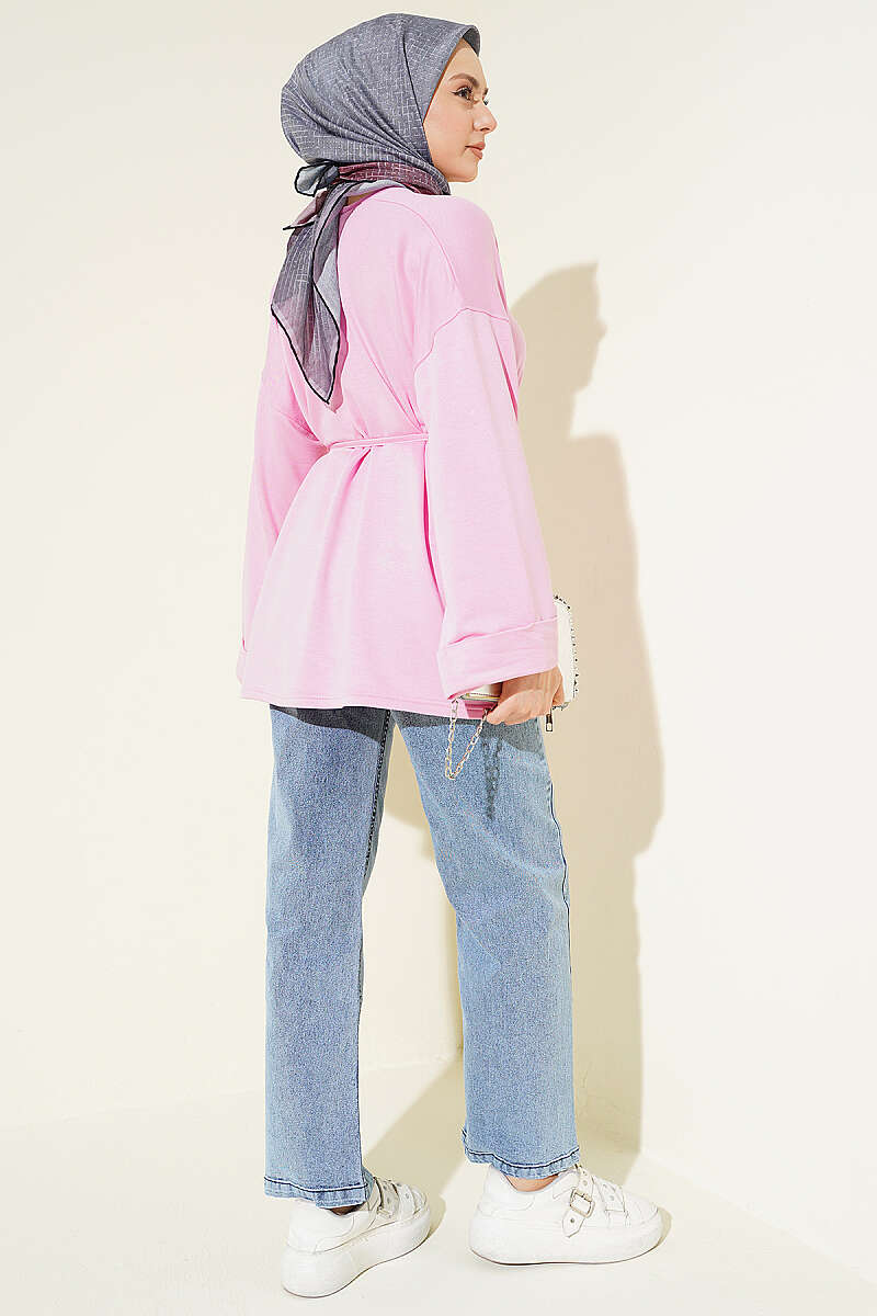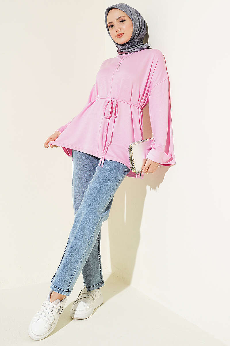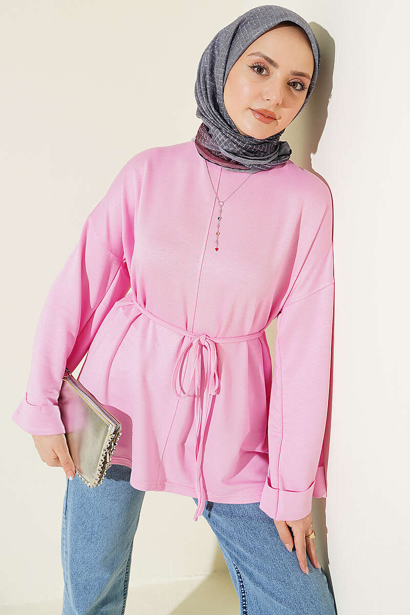 Yan Yırtmaçlı Duble Kol Tunik Pembe