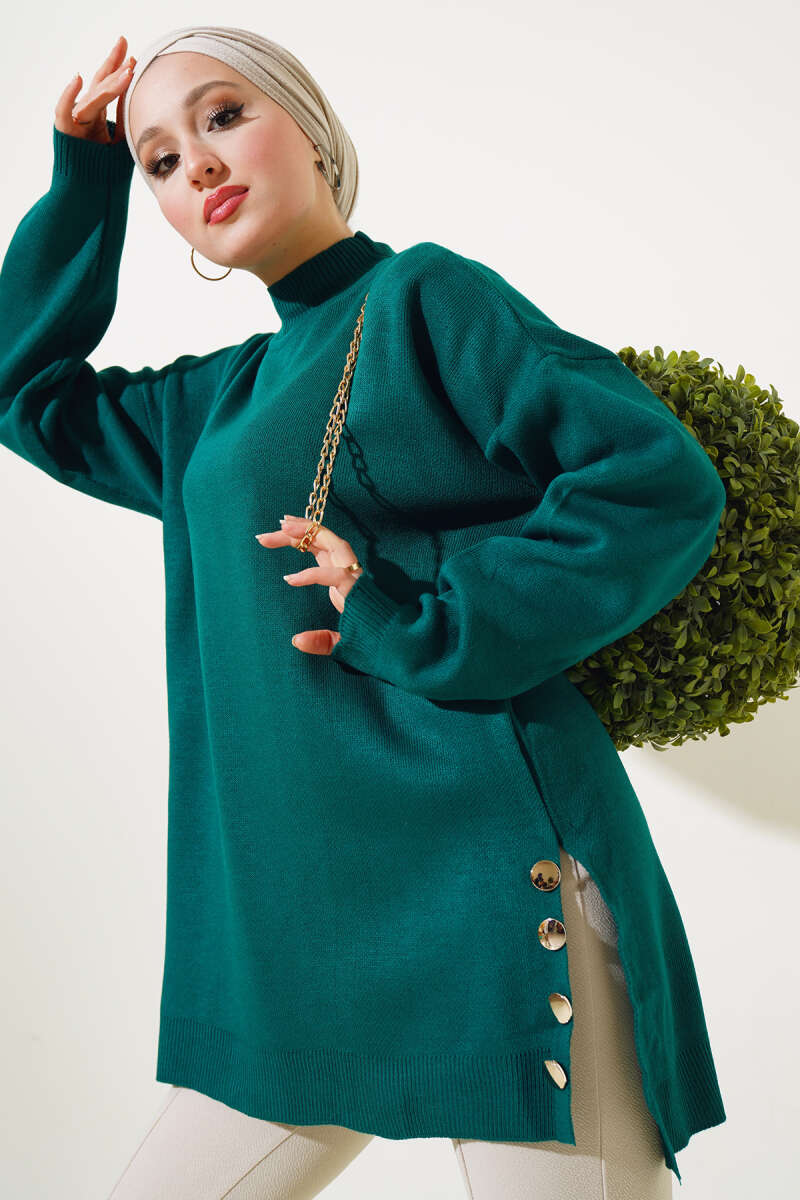 Salaş Bisiklet Yaka Simli Triko Tunik Haki