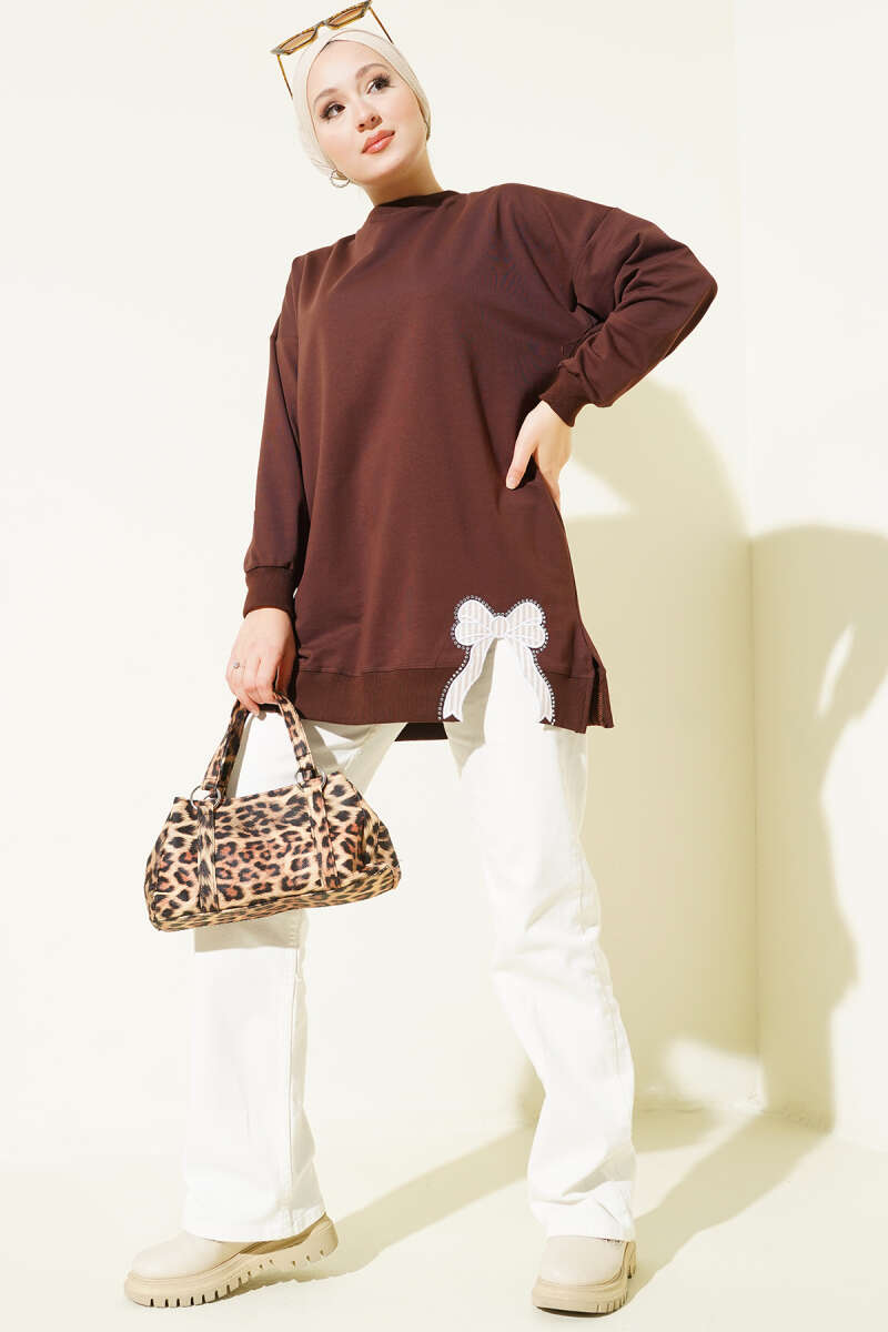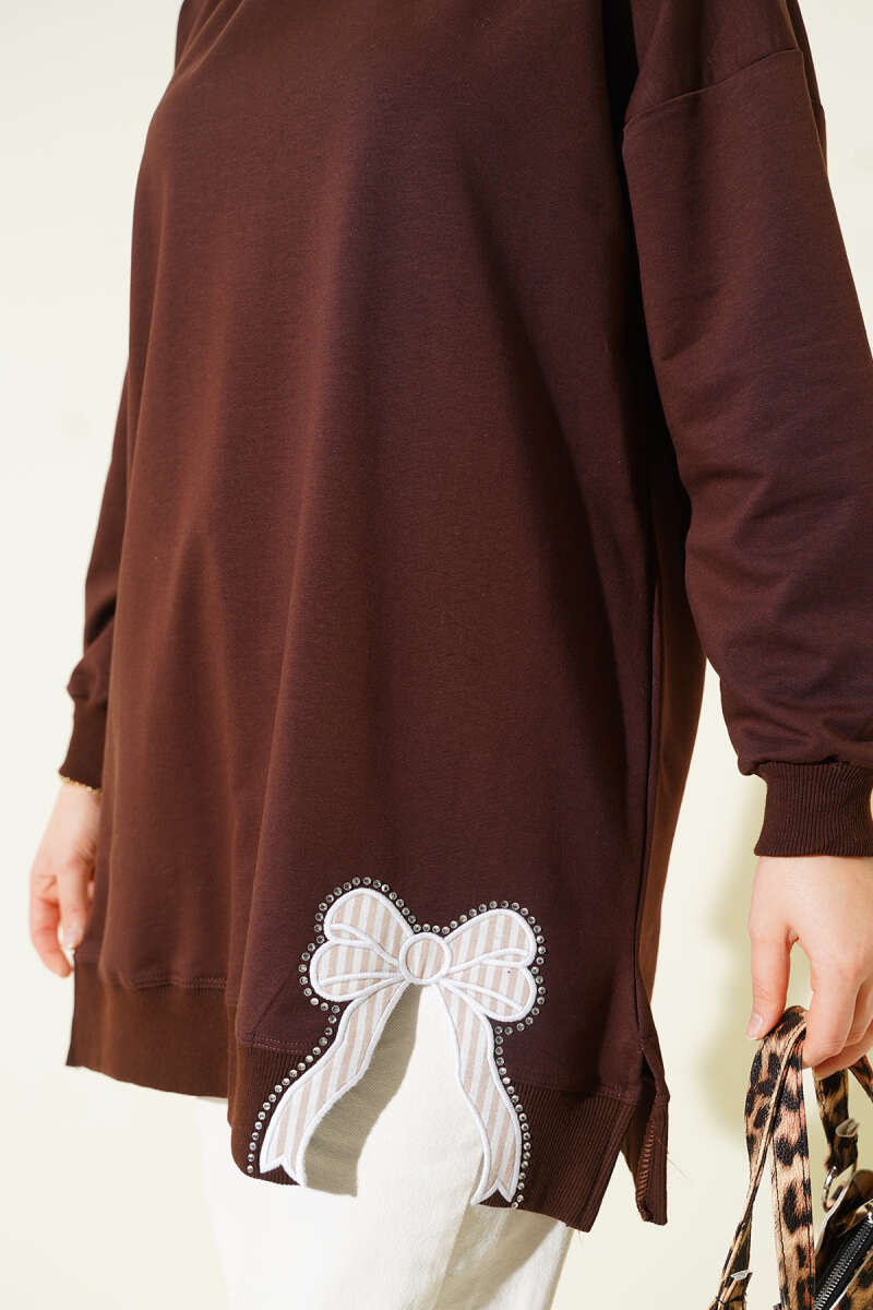 Yan Yırtmaçlı Kurdele Nakış Detaylı Tunik Bordo