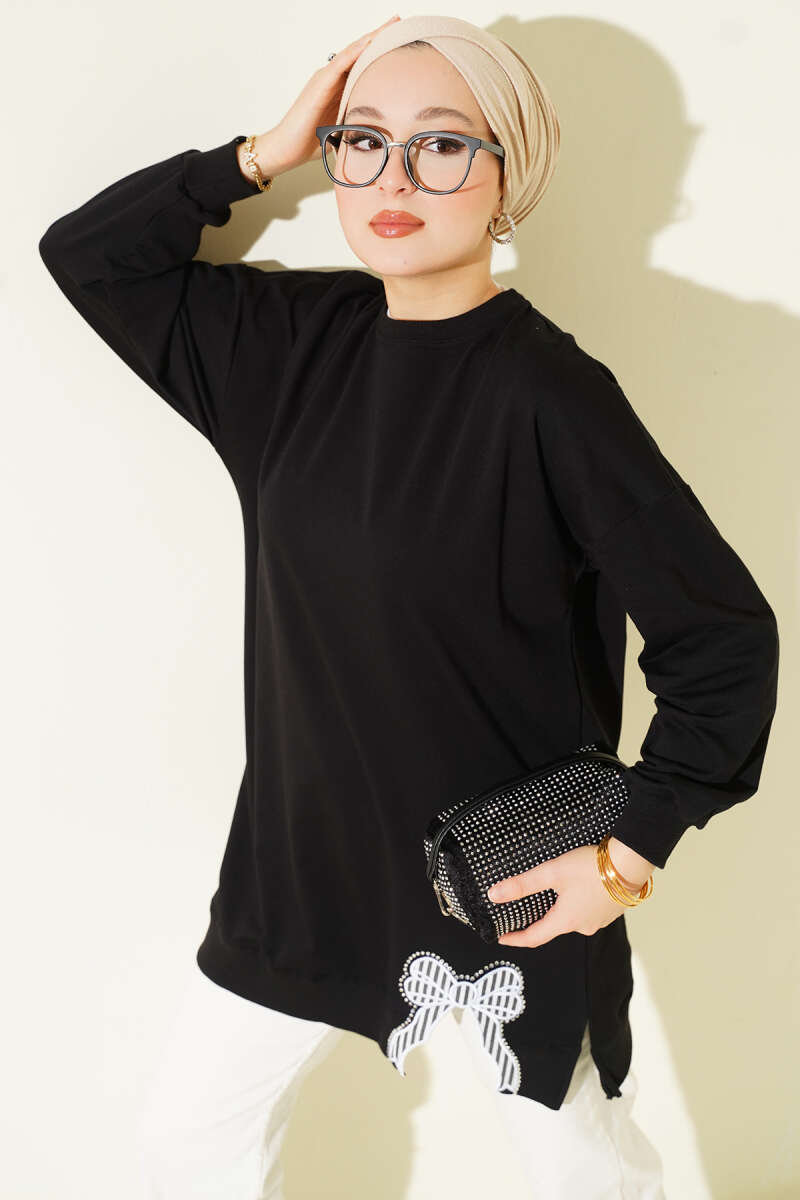 Yan Yırtmaçlı Kurdele Nakış Detaylı Tunik Kahve