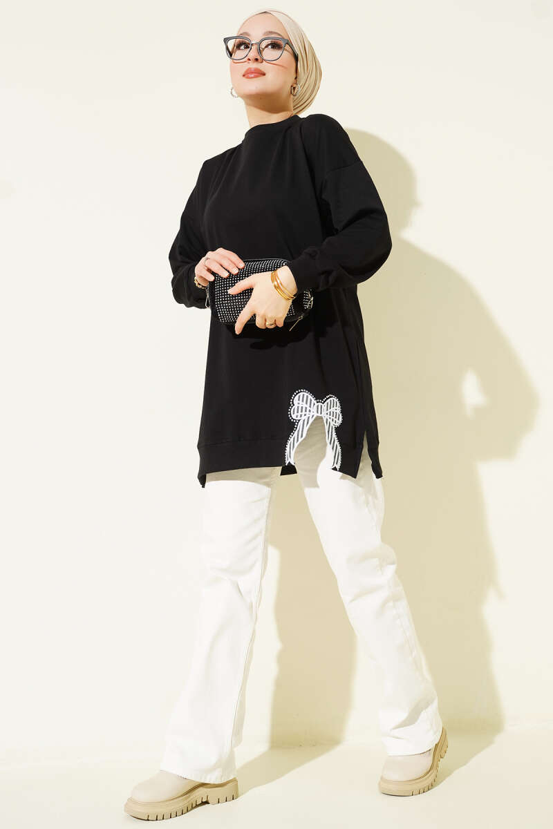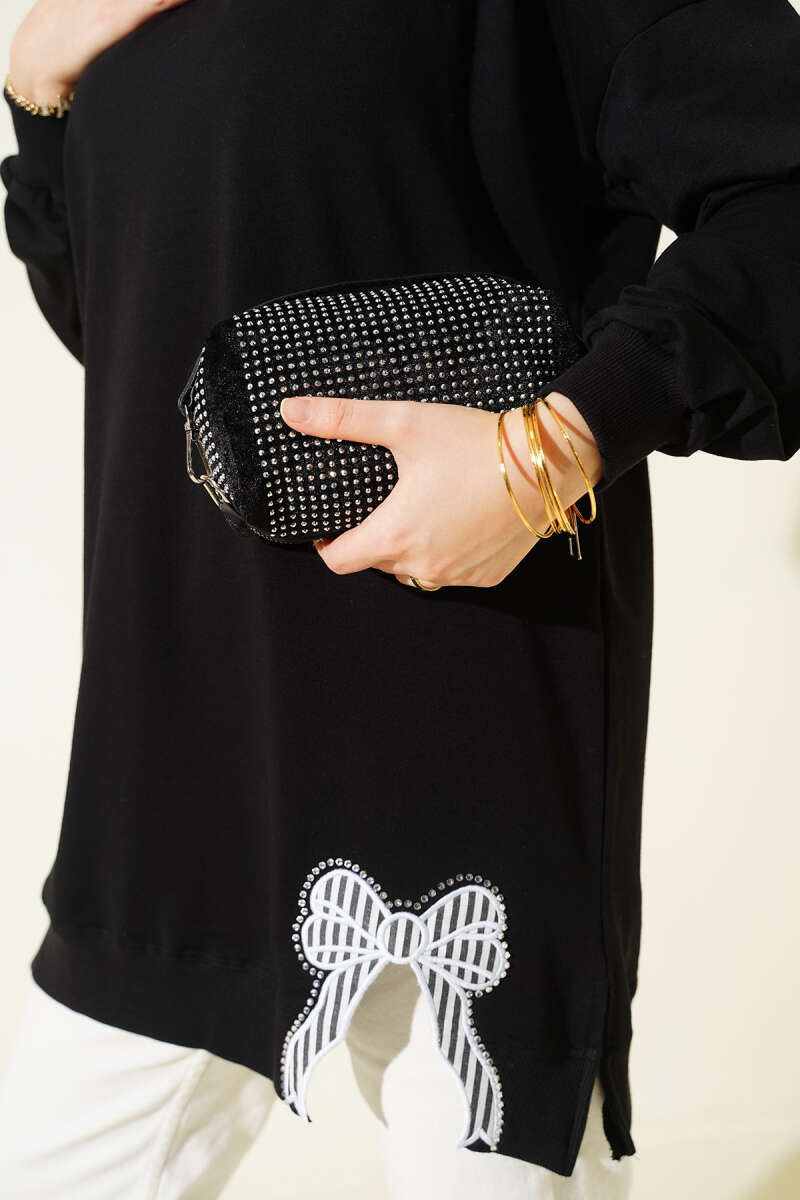 Yan Yırtmaçlı Kurdele Nakış Detaylı Tunik Bordo