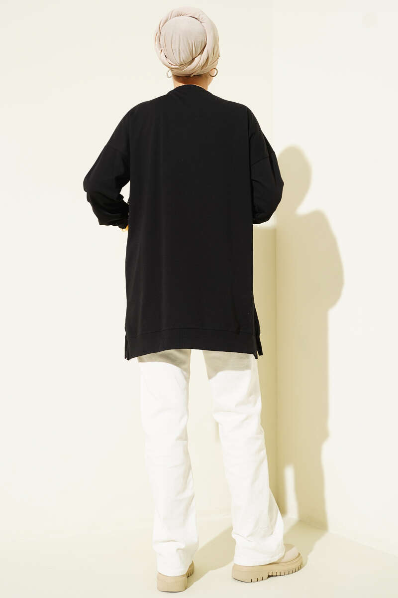Önü Şeritli Yarım Fermuarlı İkili Takım Siyah