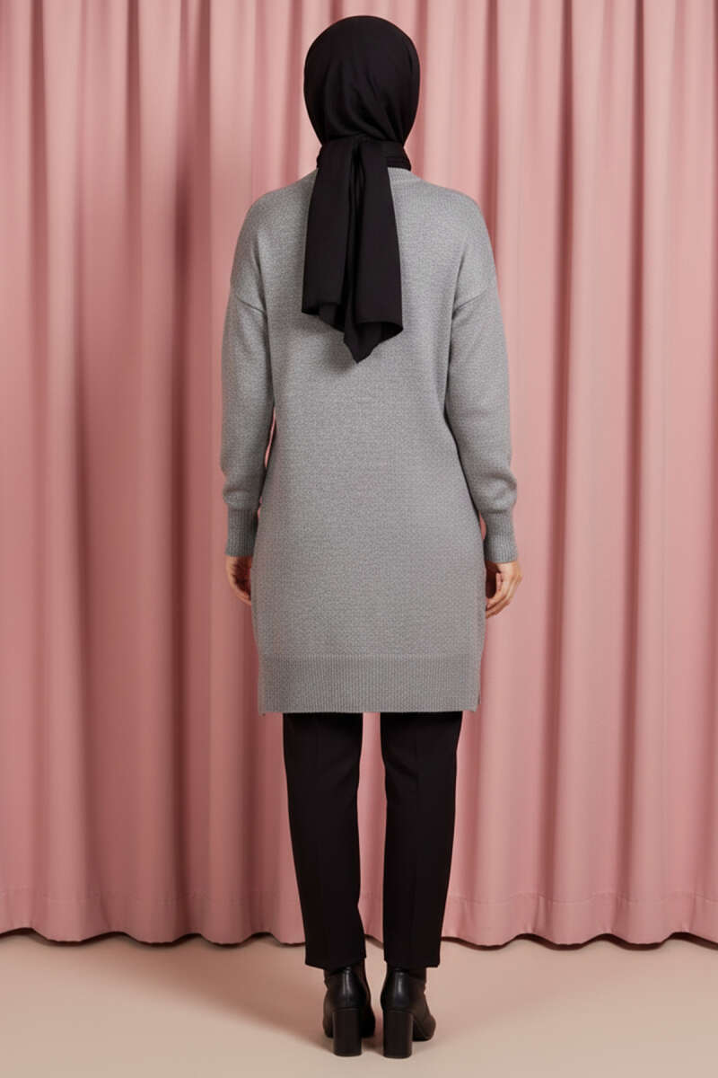 Yan Yırtmaçlı Yumoş Uzun Triko Tunik Gri