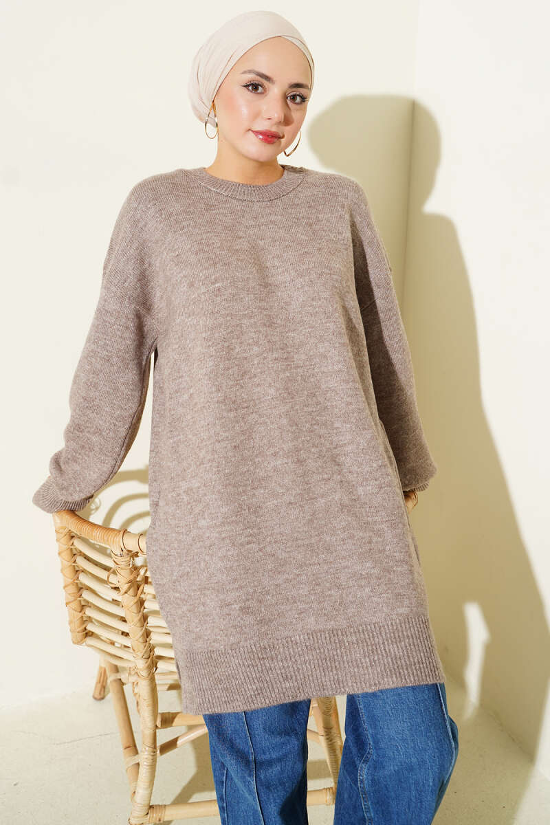 Balıkçı Yaka Balon Kol Triko Tunik Kahve