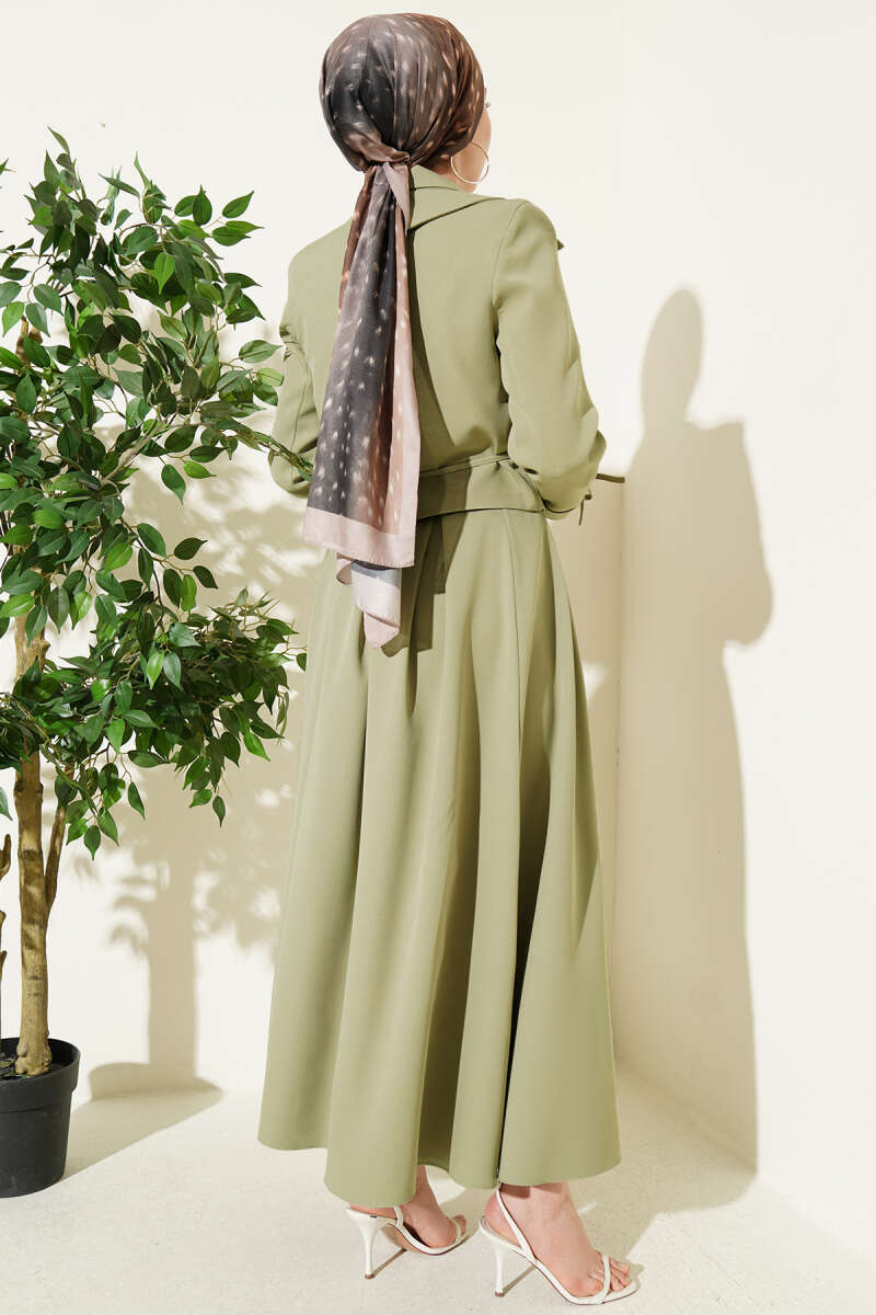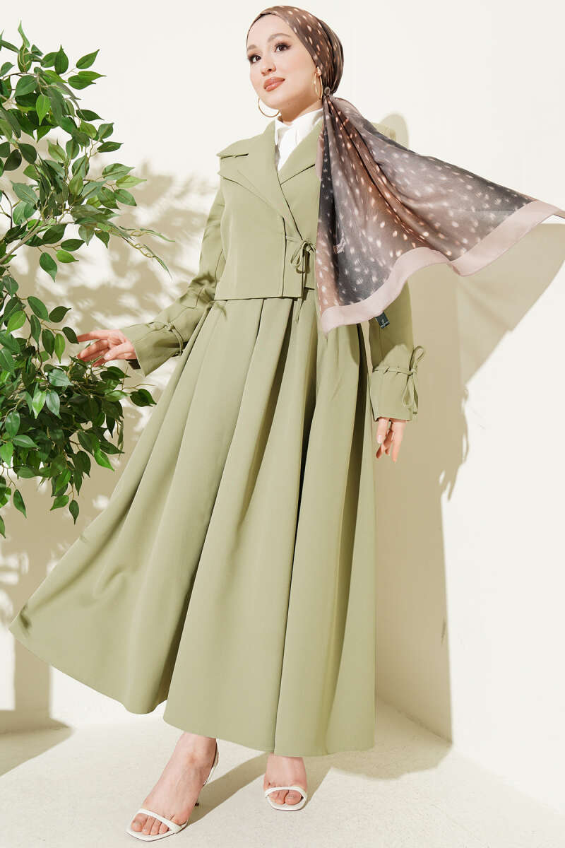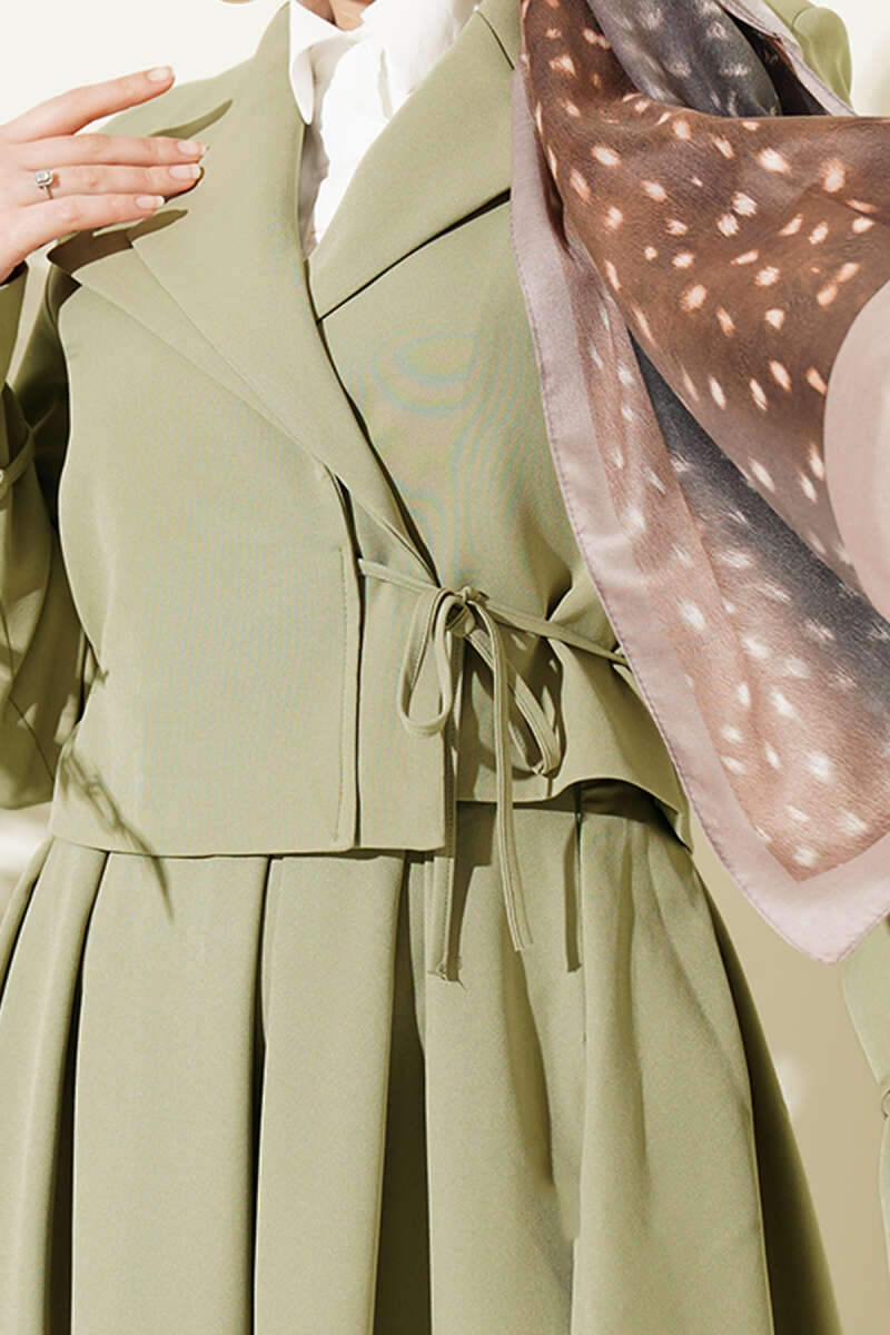 Yandan Bağcıklı Ceketli Etekli İkili Takım Çağla Yeşili