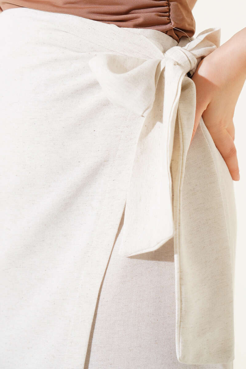 Beli Lastik Detaylı Kloş Scuba Etek Beyaz