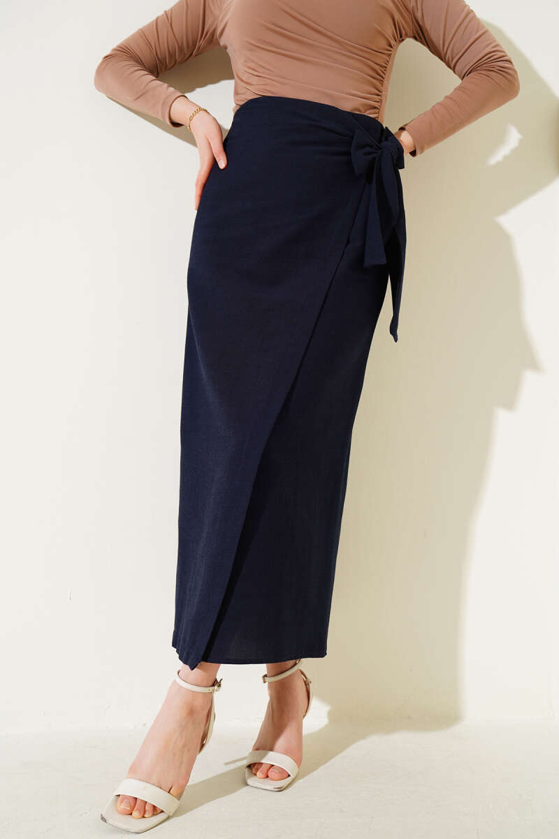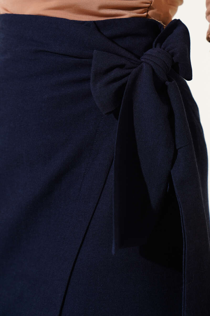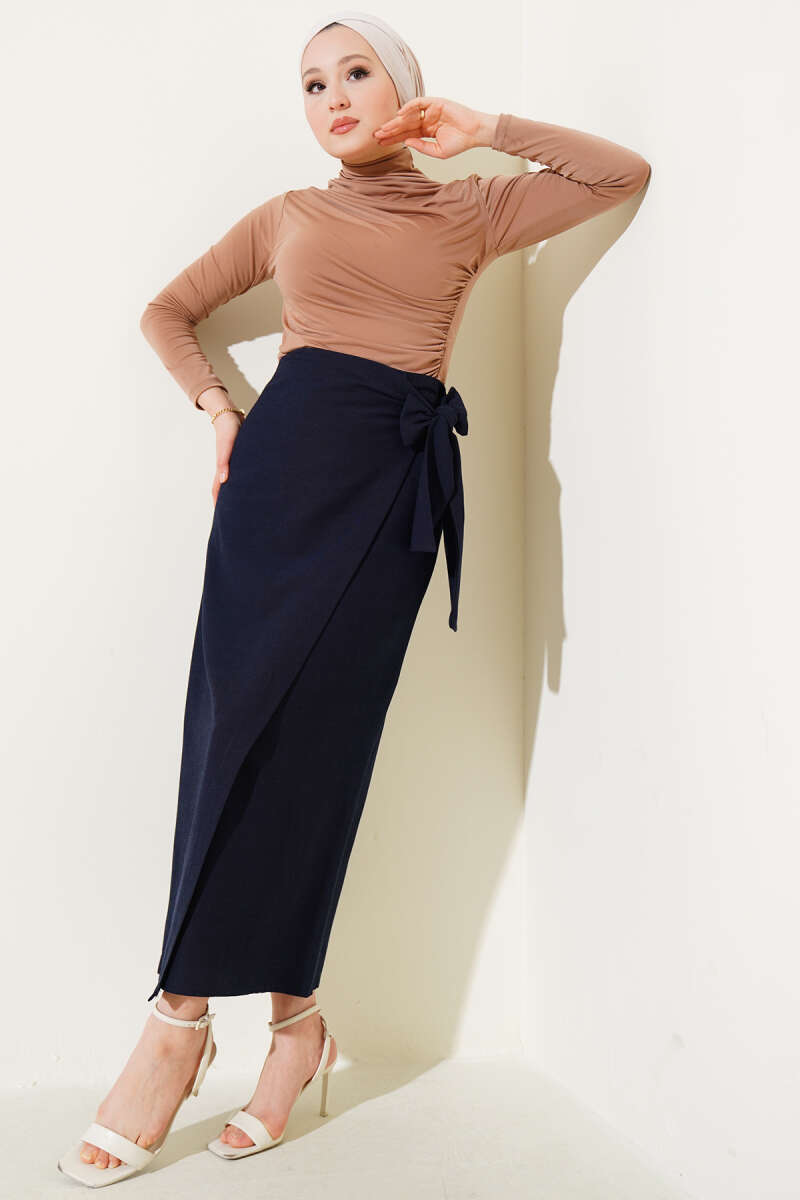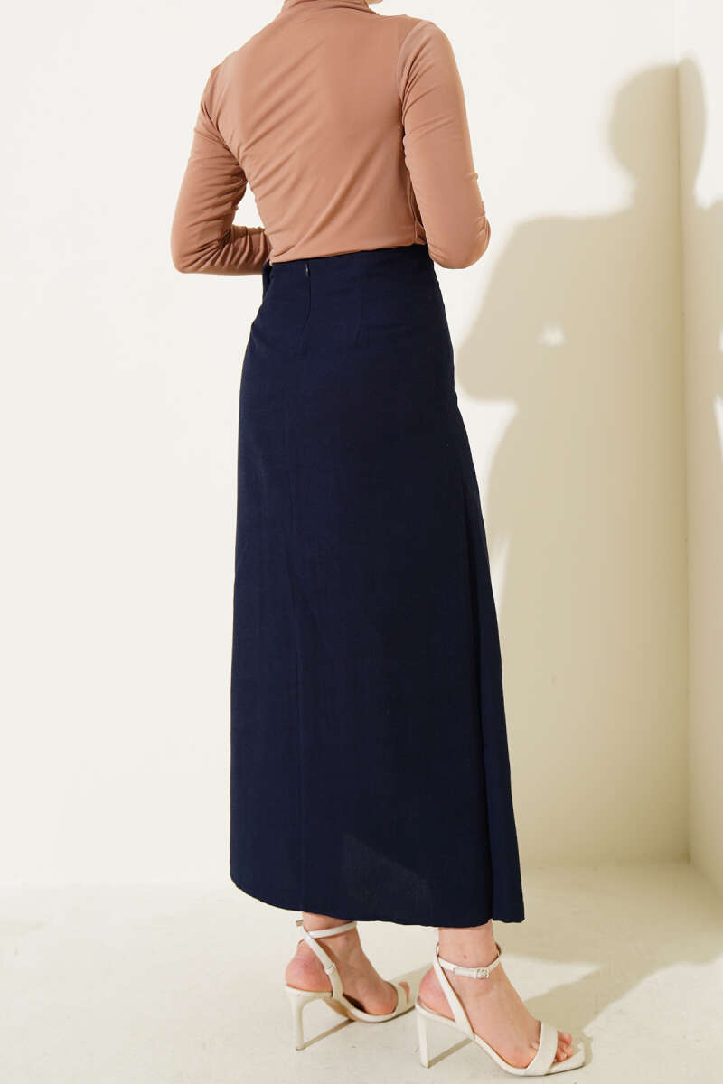 Beli Lastik Detaylı Kloş Scuba Etek Lacivert