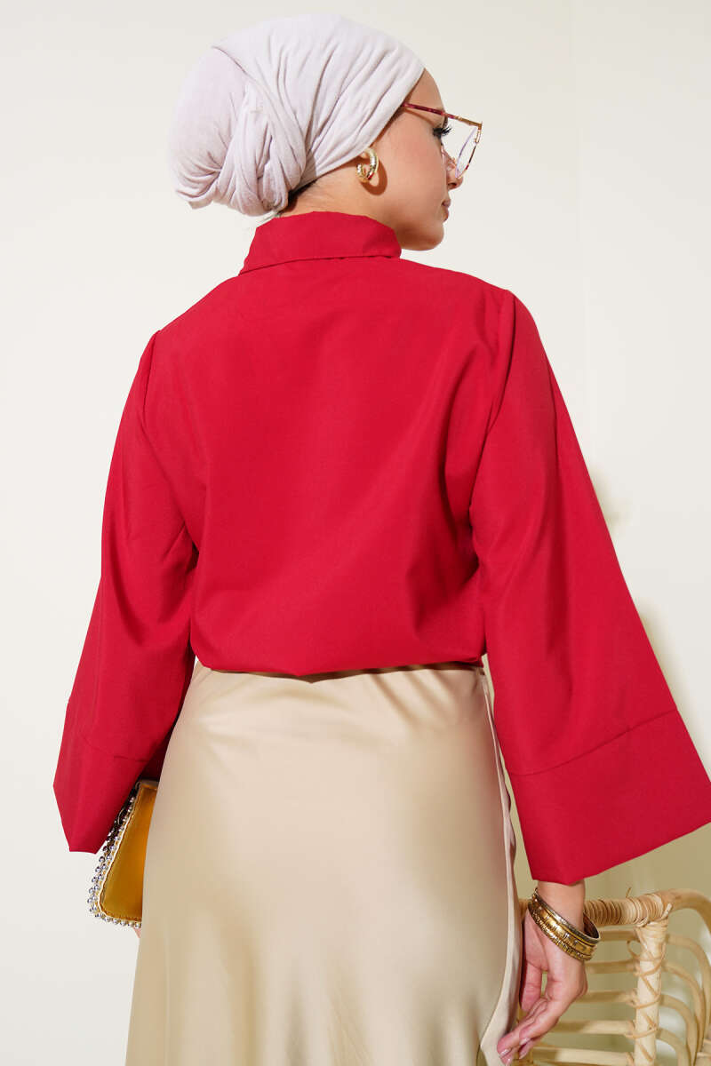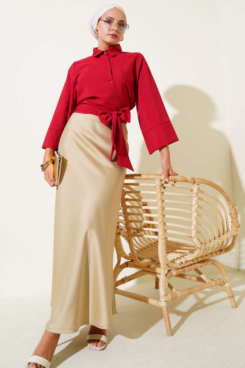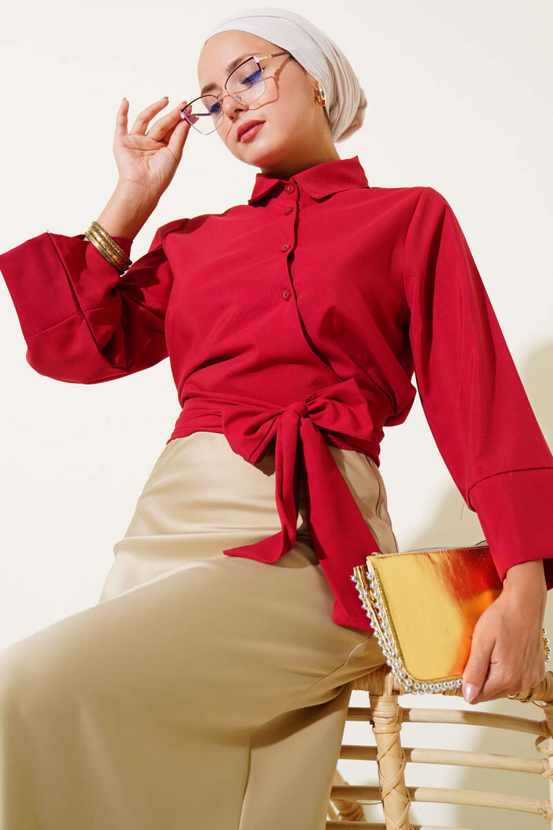 Yandan Bağlama Detaylı Kısa Gömlek Bordo