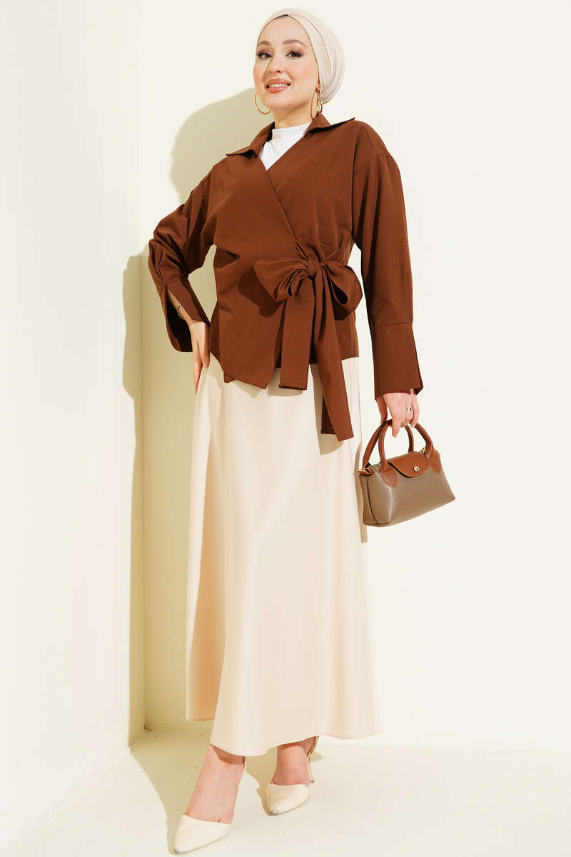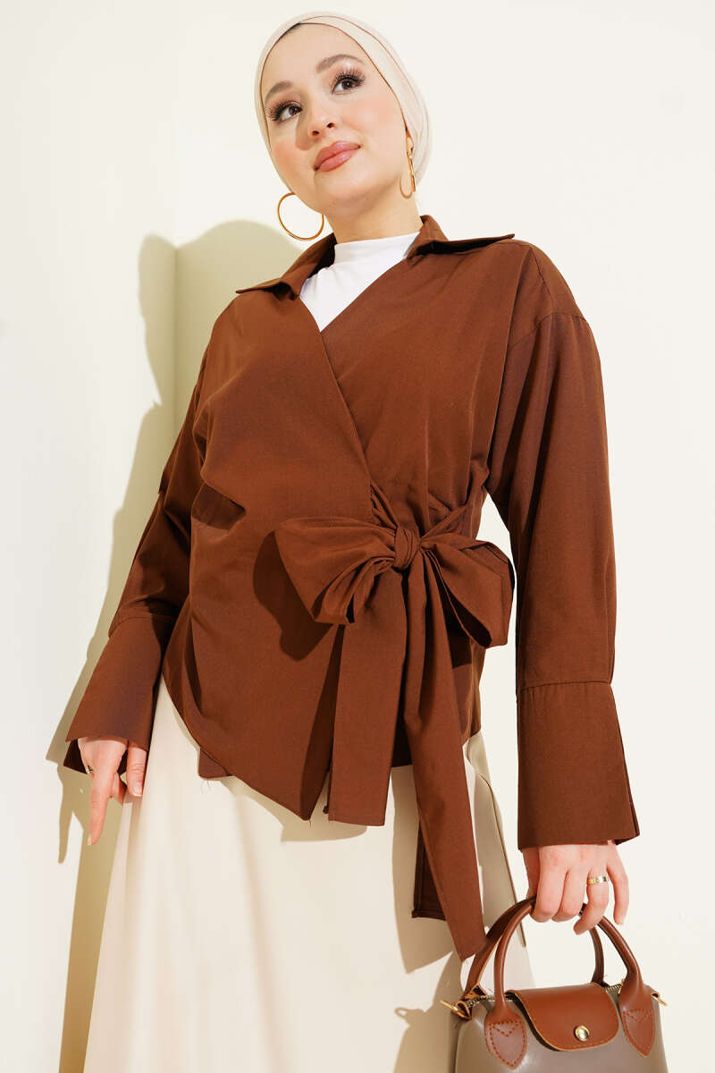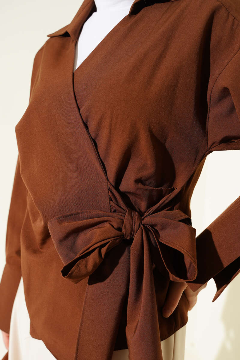 Yandan Bağlamalı Bluz Kahve