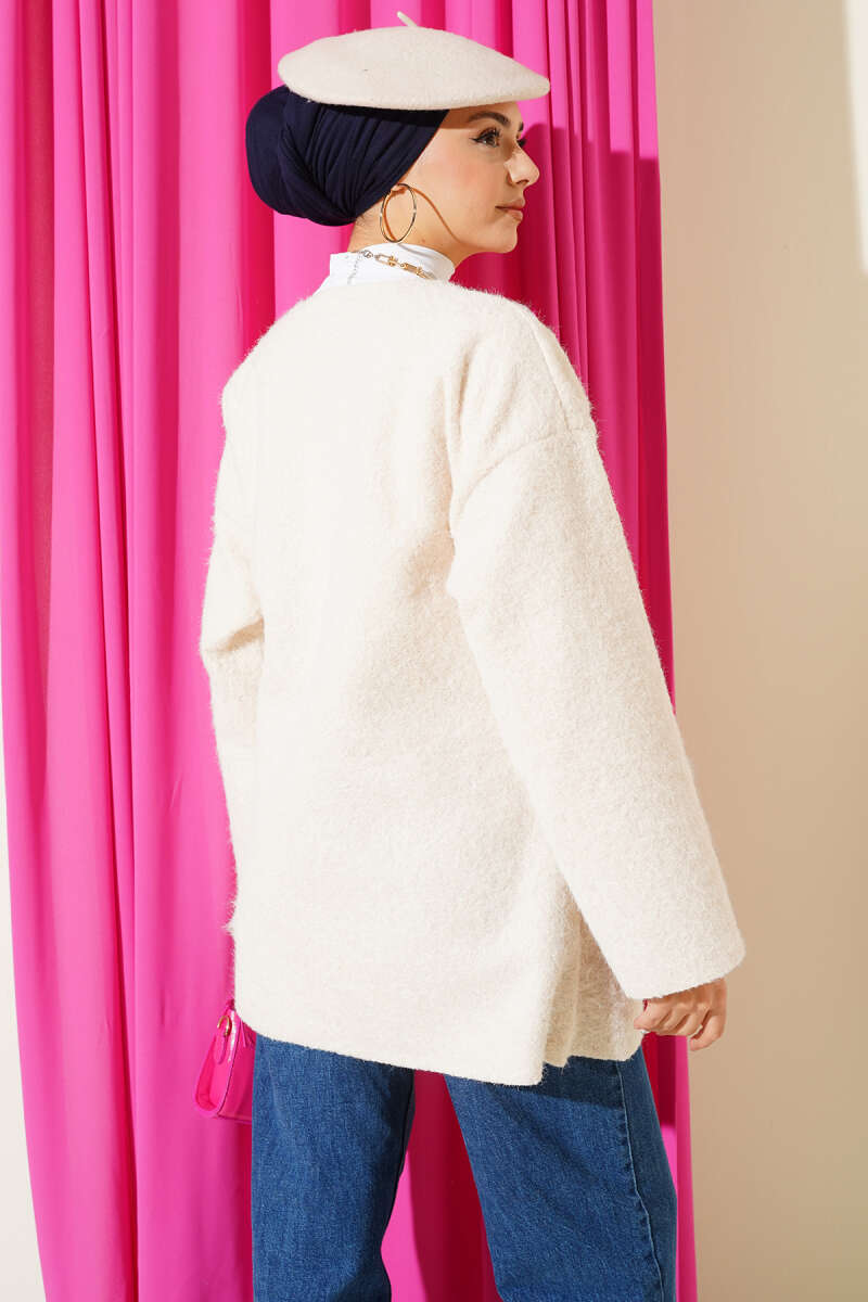 Gömlek Yaka Düğmeli Kaşe Panço Gri