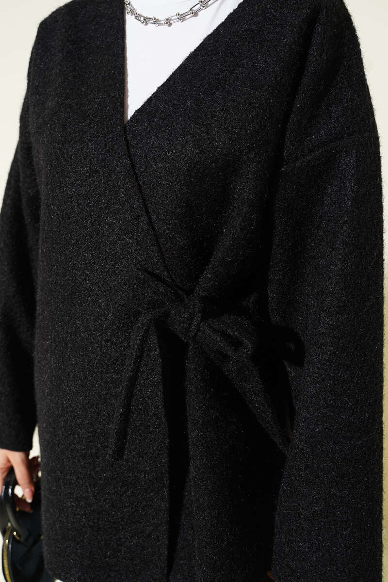 Gömlek Yaka Düğmeli Kaşe Panço Siyah