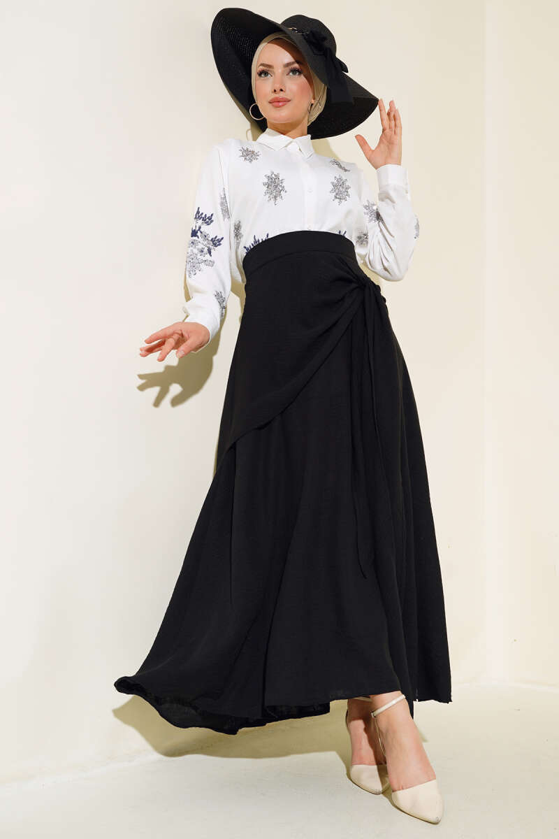Etek Ucu Güpürlü Kloş Etek Siyah