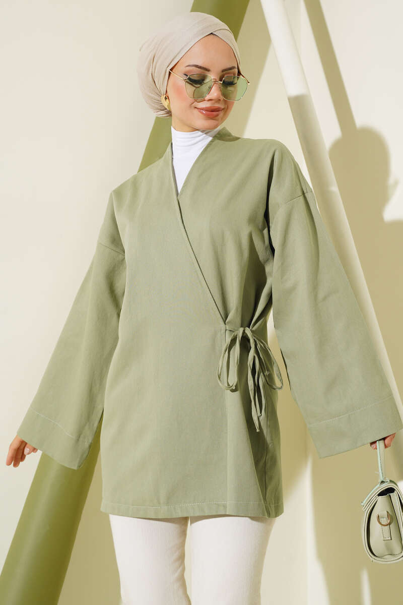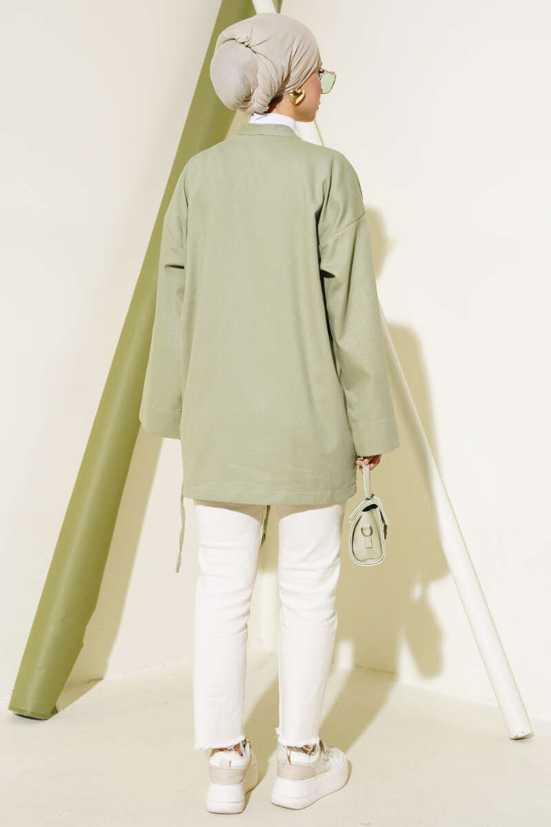 Önü Bağcıklı Keçe Ceket Latte