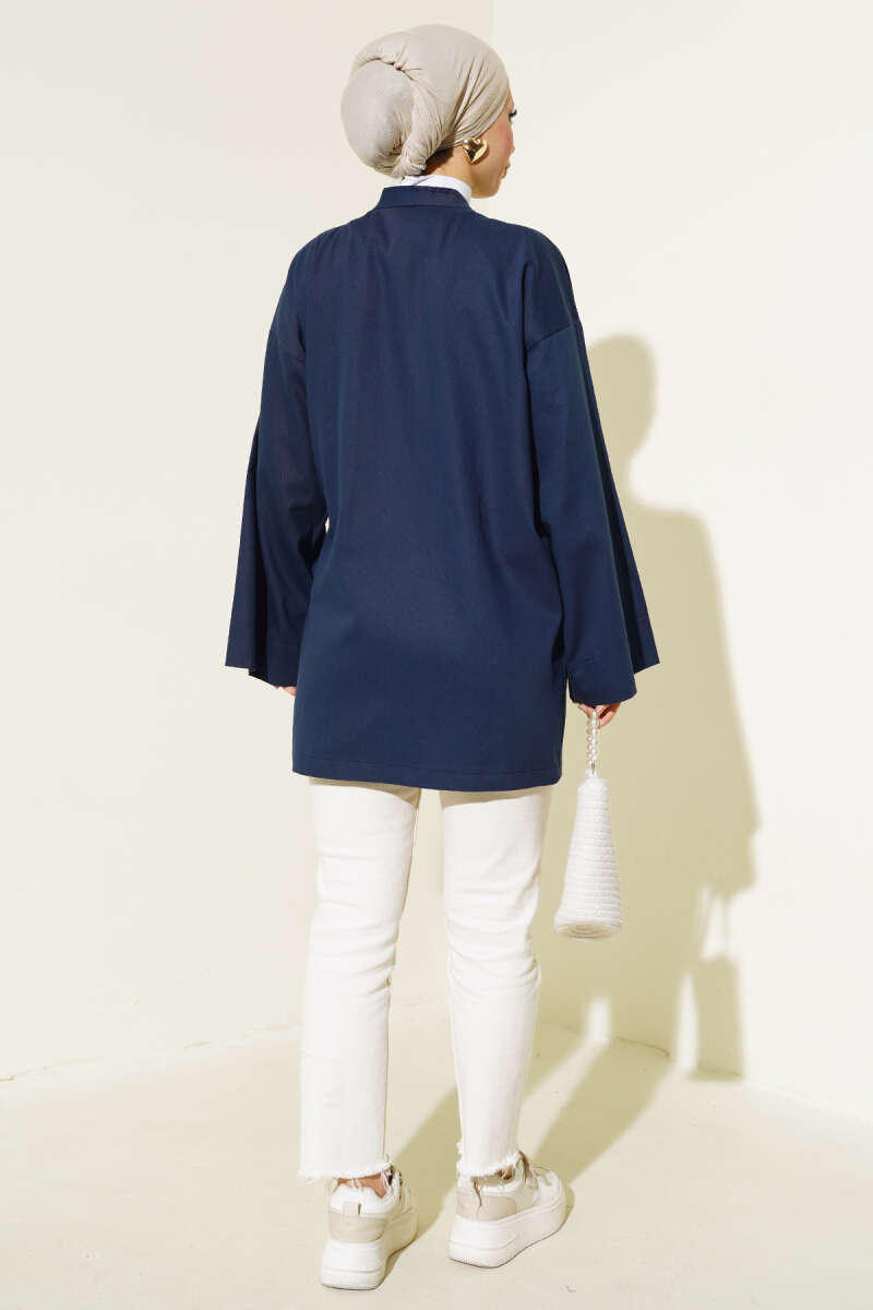 Kapalı Yırtmaçlı Kalem Etek Lacivert