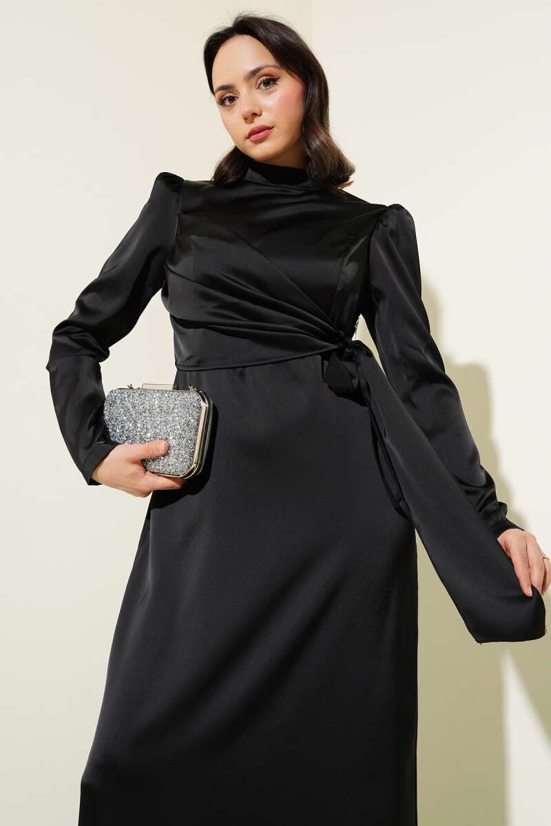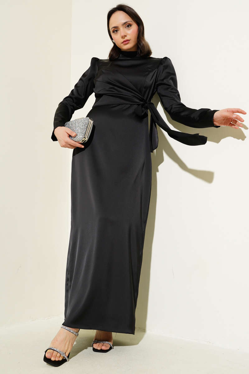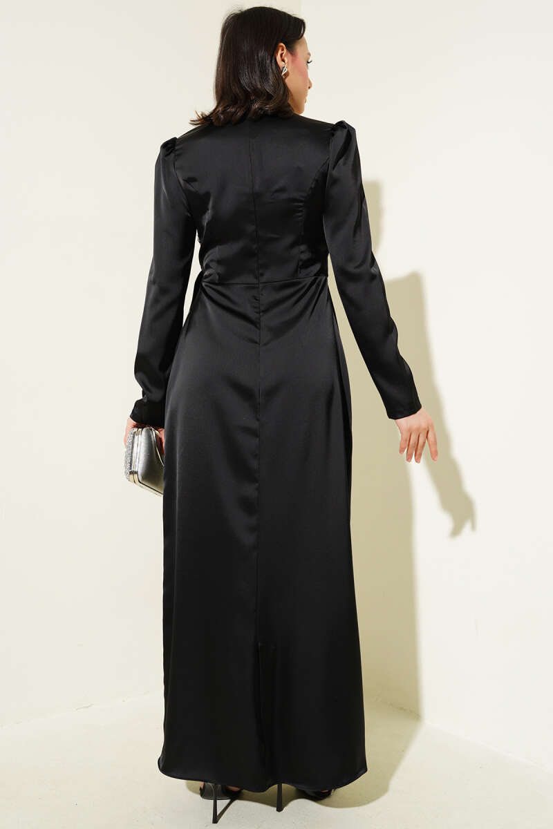 Omuz Pelerinli Taş Detaylı Abiye Elbise Siyah
