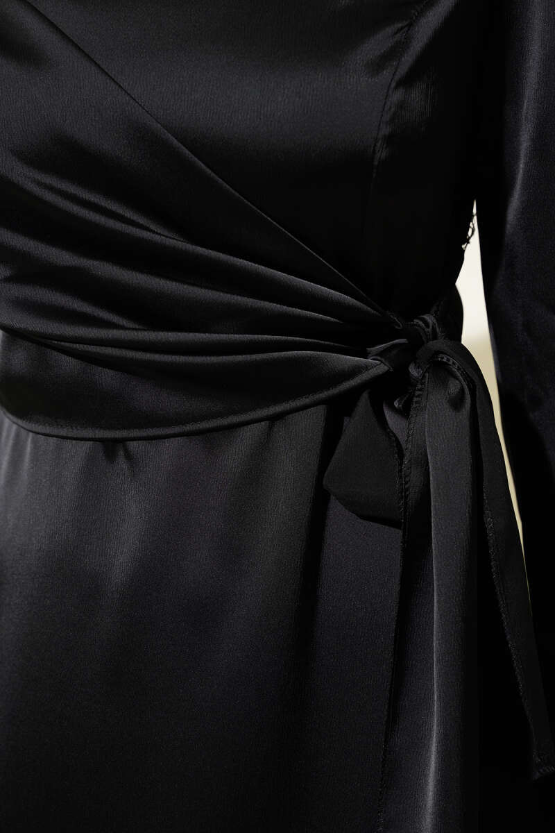 Çiçek Motifli Tül Pelerinli Abiye Elbise Siyah