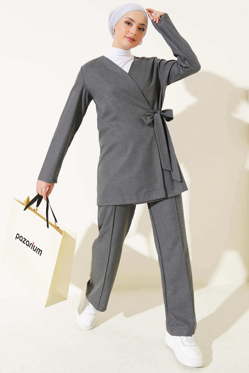 Pantolon Biyeli Fermuarlı Loyşa İkili Takım Siyah