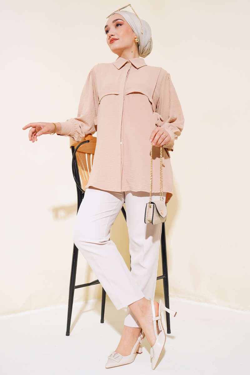 Yandan Bağlamalı Patlı Gömlek Latte