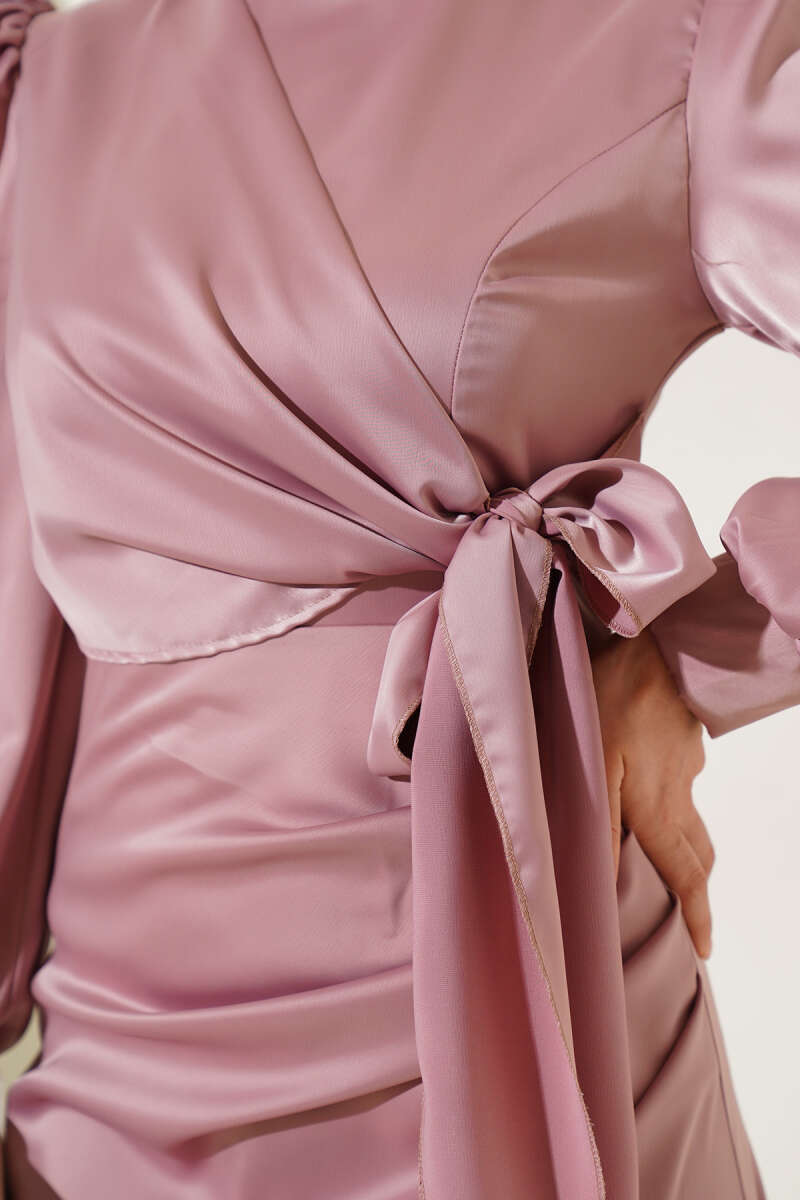 Kolları Fiyonk Detaylı Selanik Elbise Mürdüm