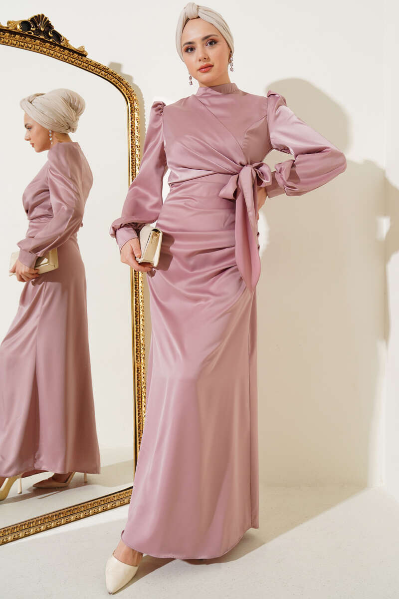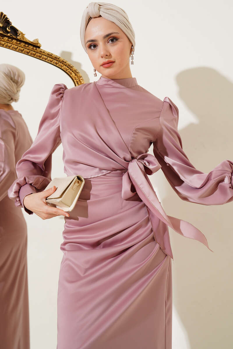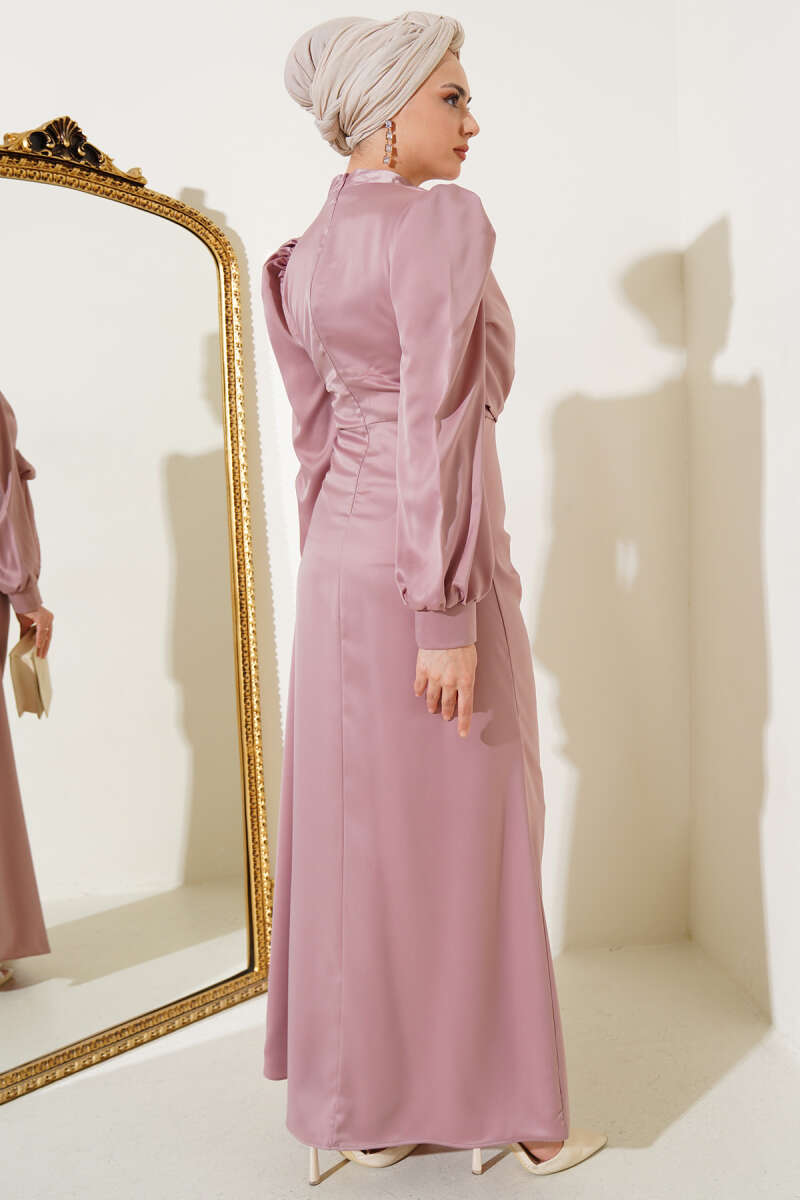 Kolları Fiyonk Detaylı Selanik Elbise Taş