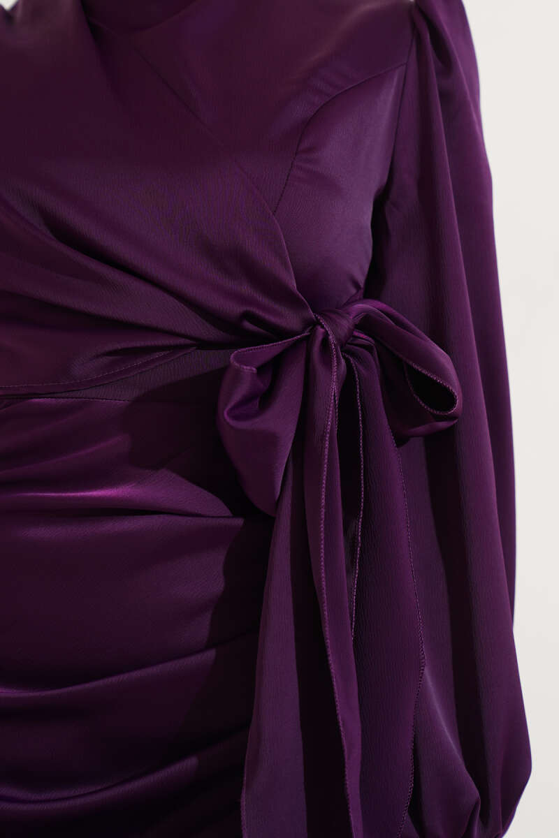 Kolları Fiyonk Detaylı Selanik Elbise Mürdüm