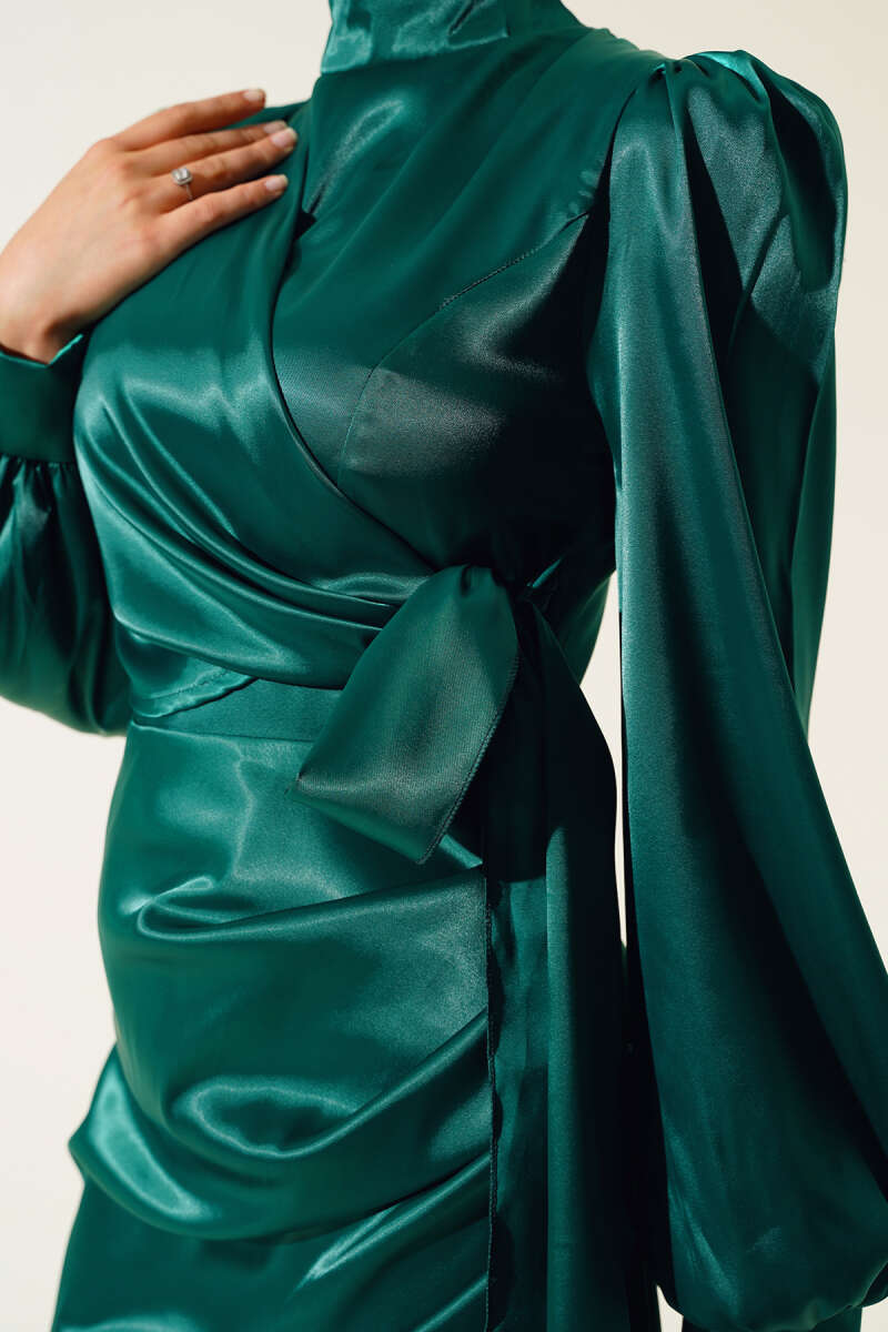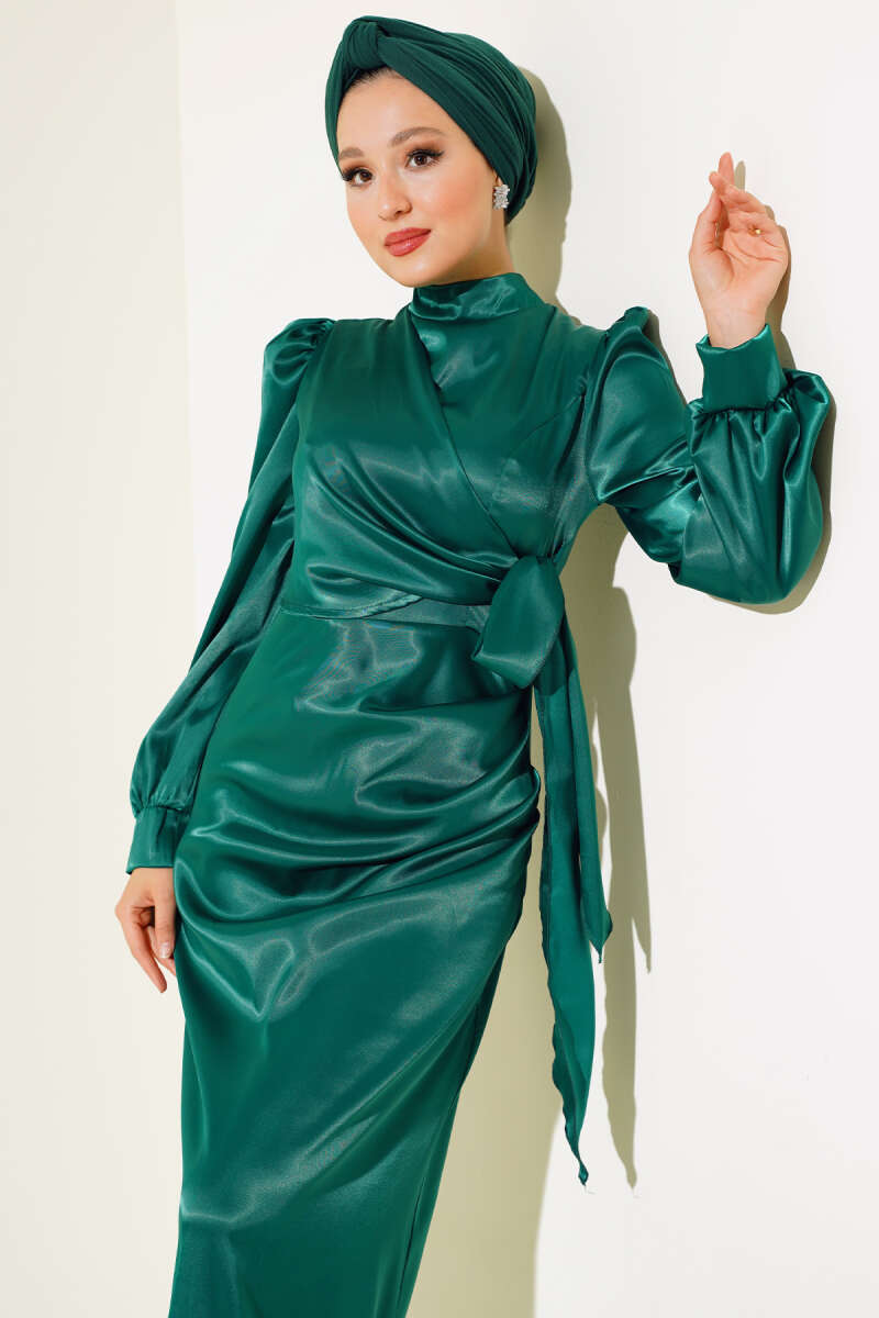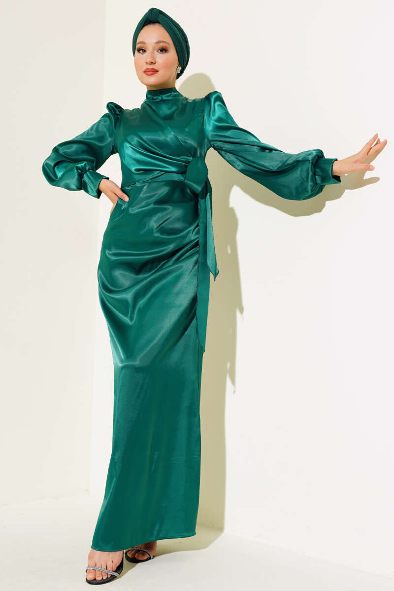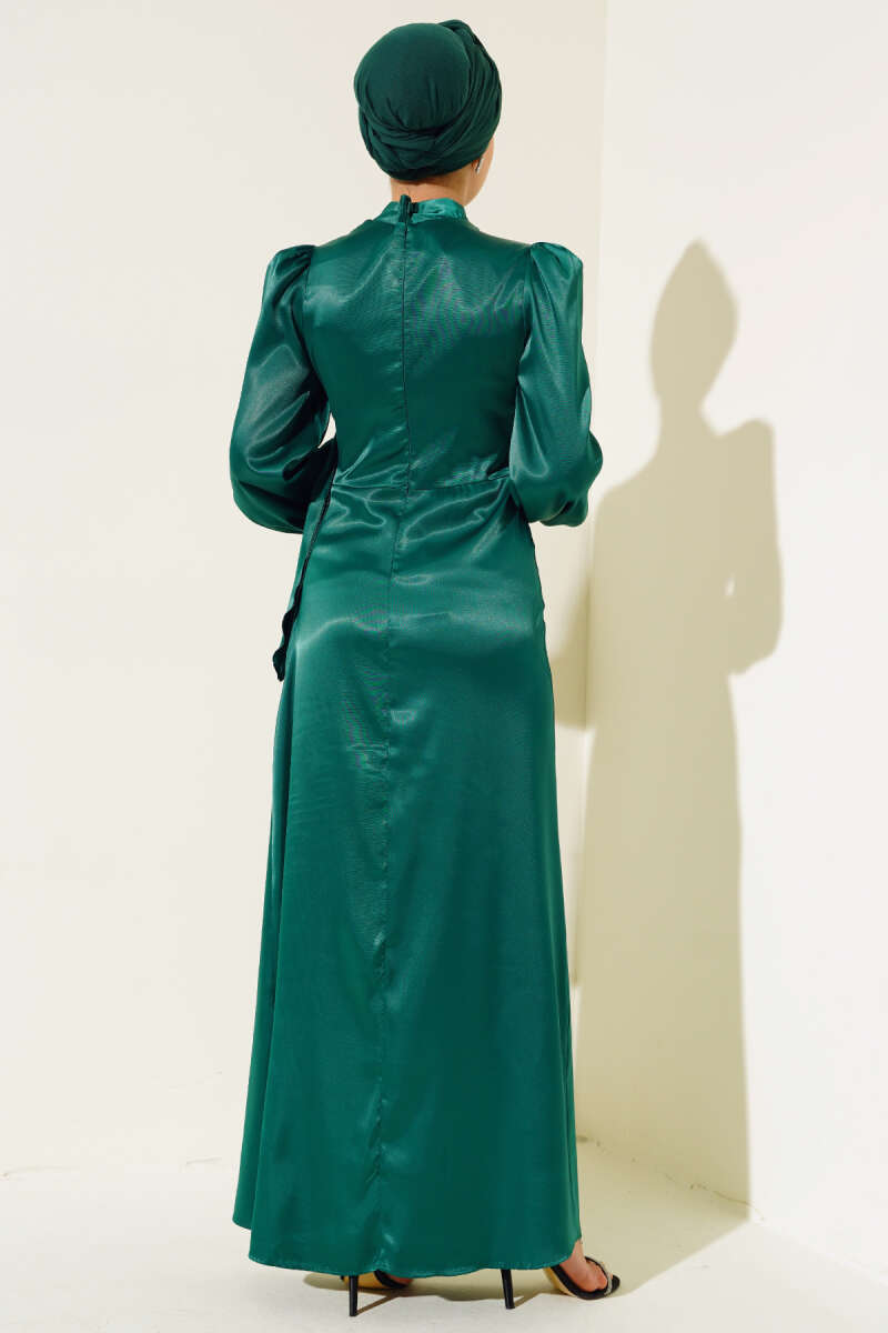 Önü Büzgülü Pul Payet Abiye Elbise Haki