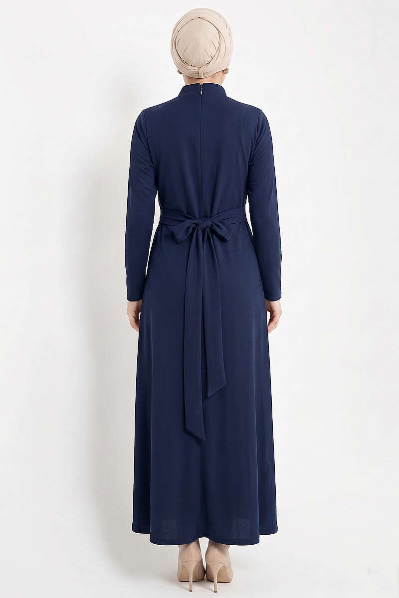 Gül Tokalı Saten Abiye Elbise Lacivert